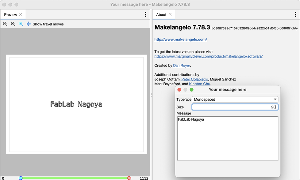 To use this robot, make what want to let draw on Makelangelo. For example input text.
