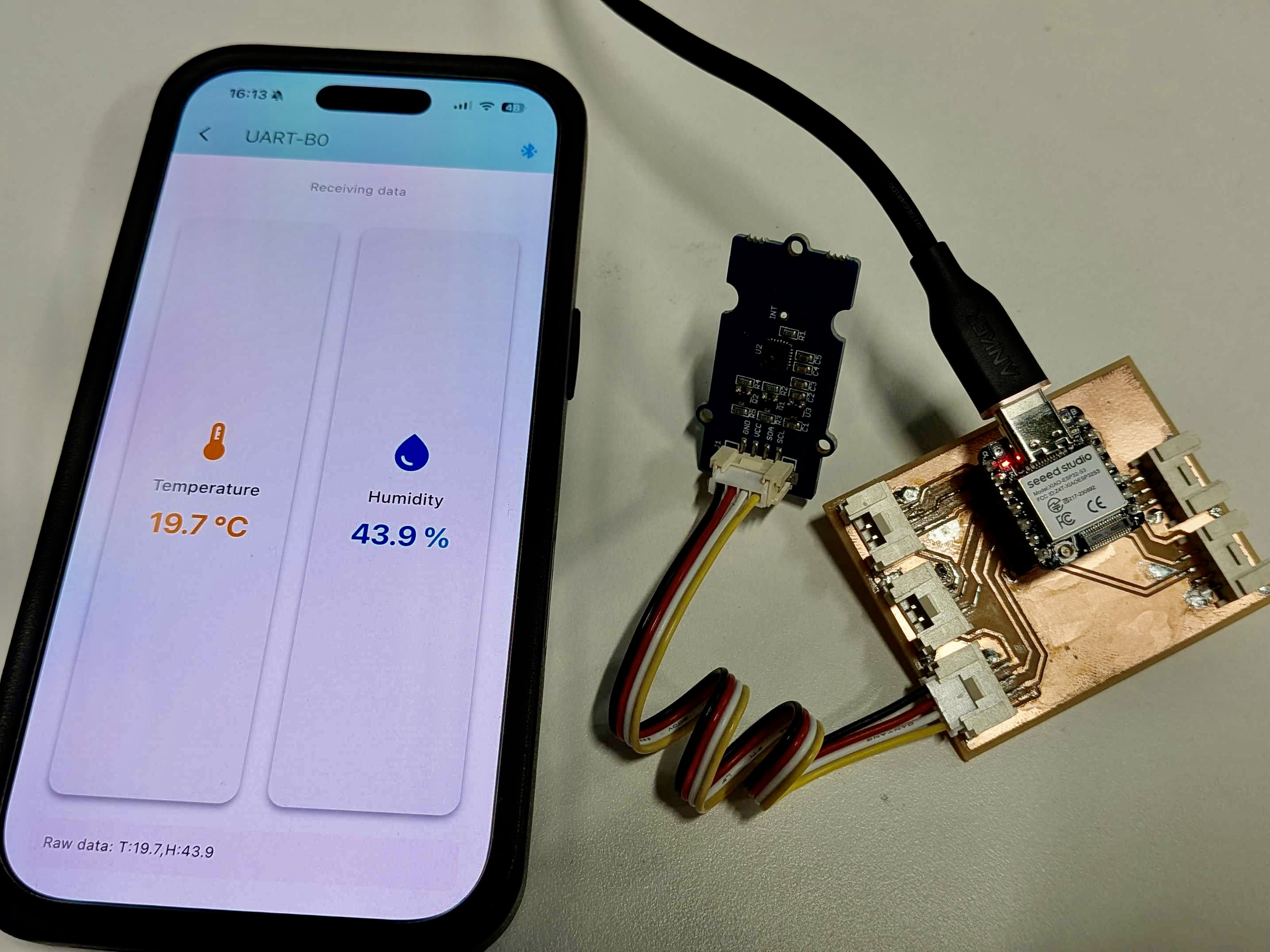 I have Seeed Studio XIAO ESP32-S3 and Grove - Temperature&Humidity Sensor (High-Accuracy&Mini) v1.0, so I built temp and hum sensor node with the board I made at week 8.