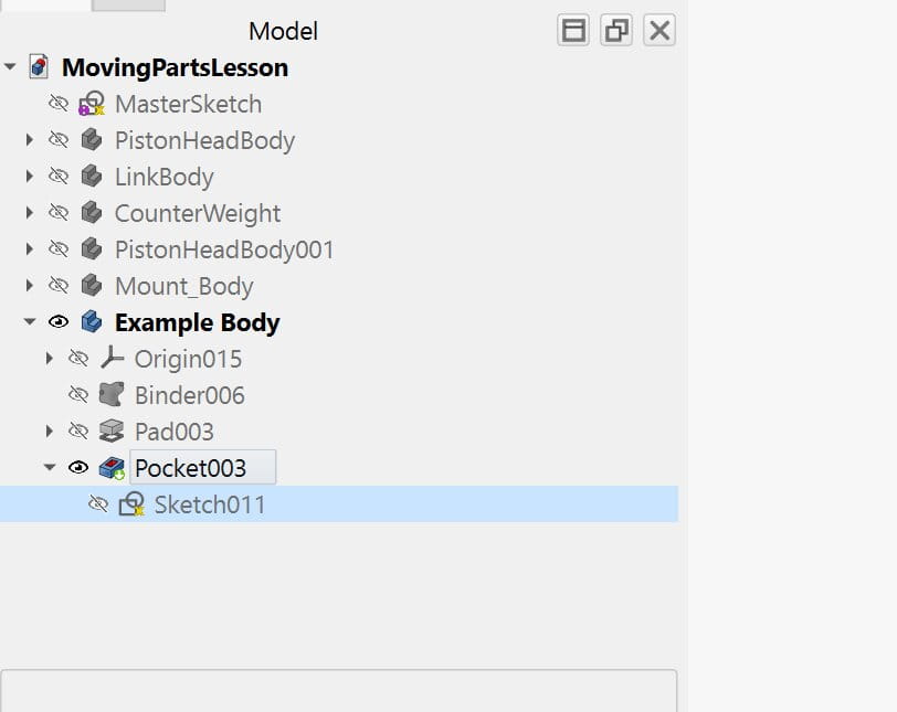 and now we make body parts, making each 1/4in and linked to the mastersketch
