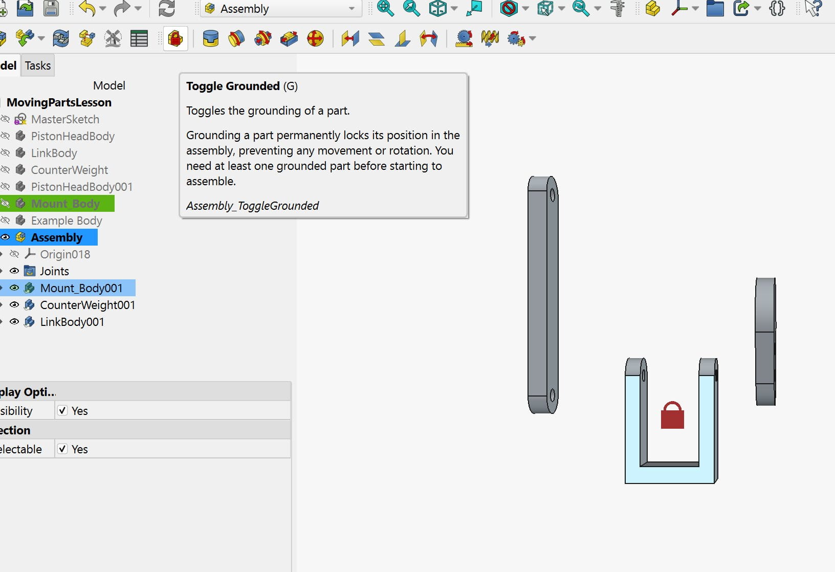 I followed along with MangoJellyCat’s video FreeCAD 1.1 Beginners Friendly Modeling and Assembly (Model, Assemble, Simulate, Animate) to lean how to simulate.