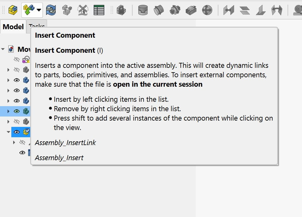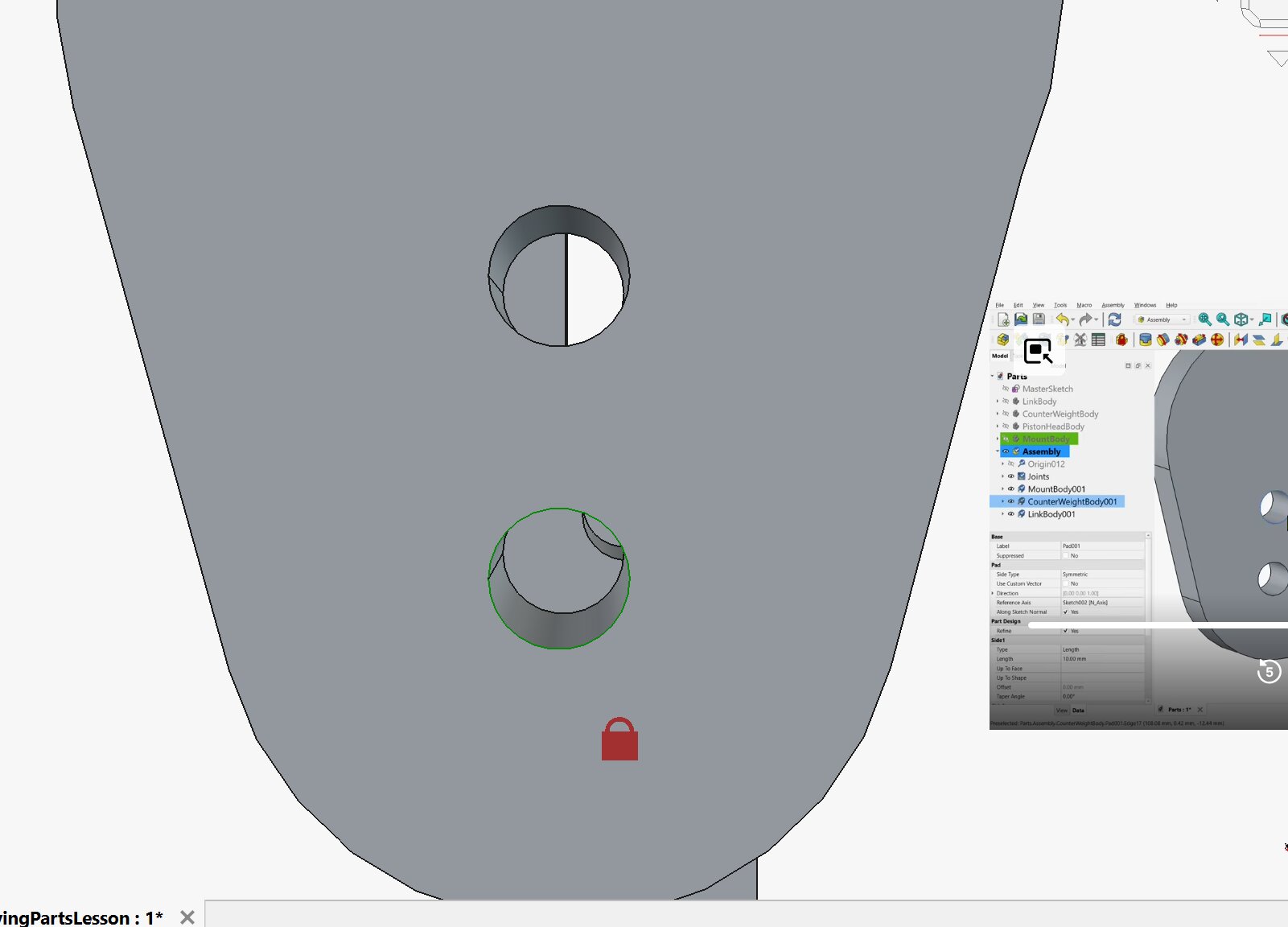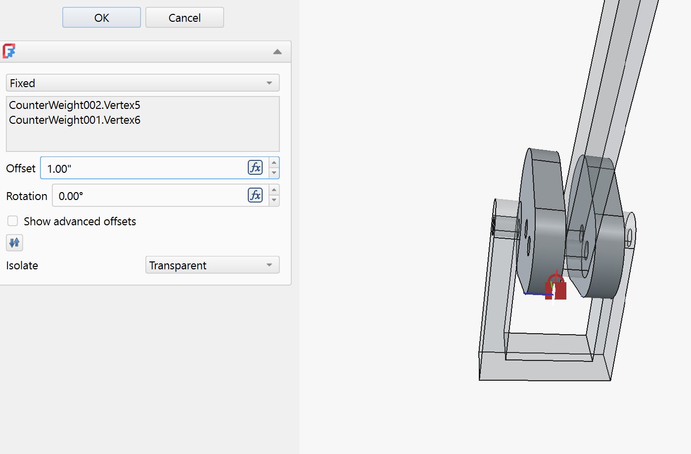 use insert component to make another counter weight. we are going to mirror it with the current counter weight. double click and transform to rotate it to match