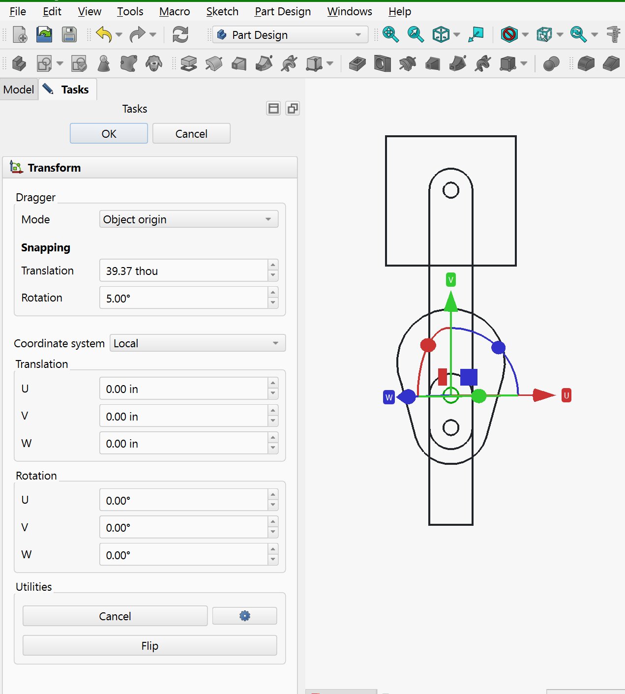 we can see the orgin point is in the cent, but we cant it to be closer to where our part is.