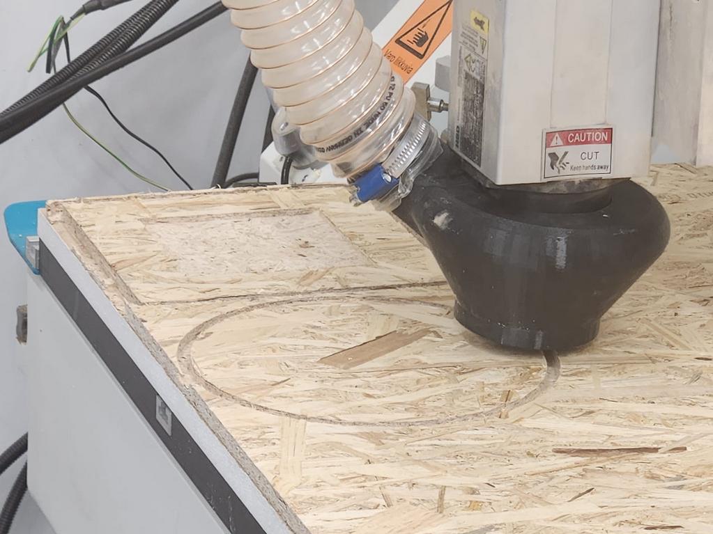 Several safety measures are in place in case of an emergency. The machine can be stopped immediately using the emergency stop button located on the CNC machine, and there is also an emergency stop option available within the NC Studio control software. In addition, a fire extinguisher and a first aid kit are available near the entrance of the lab to respond quickly to accidents. To maintain a safe working environment, the lab follows a buddy system policy, meaning that the CNC machine should never be operated alone. A trained supervisor must always be present; Antti Mäntyniemi was our instructor for this week.