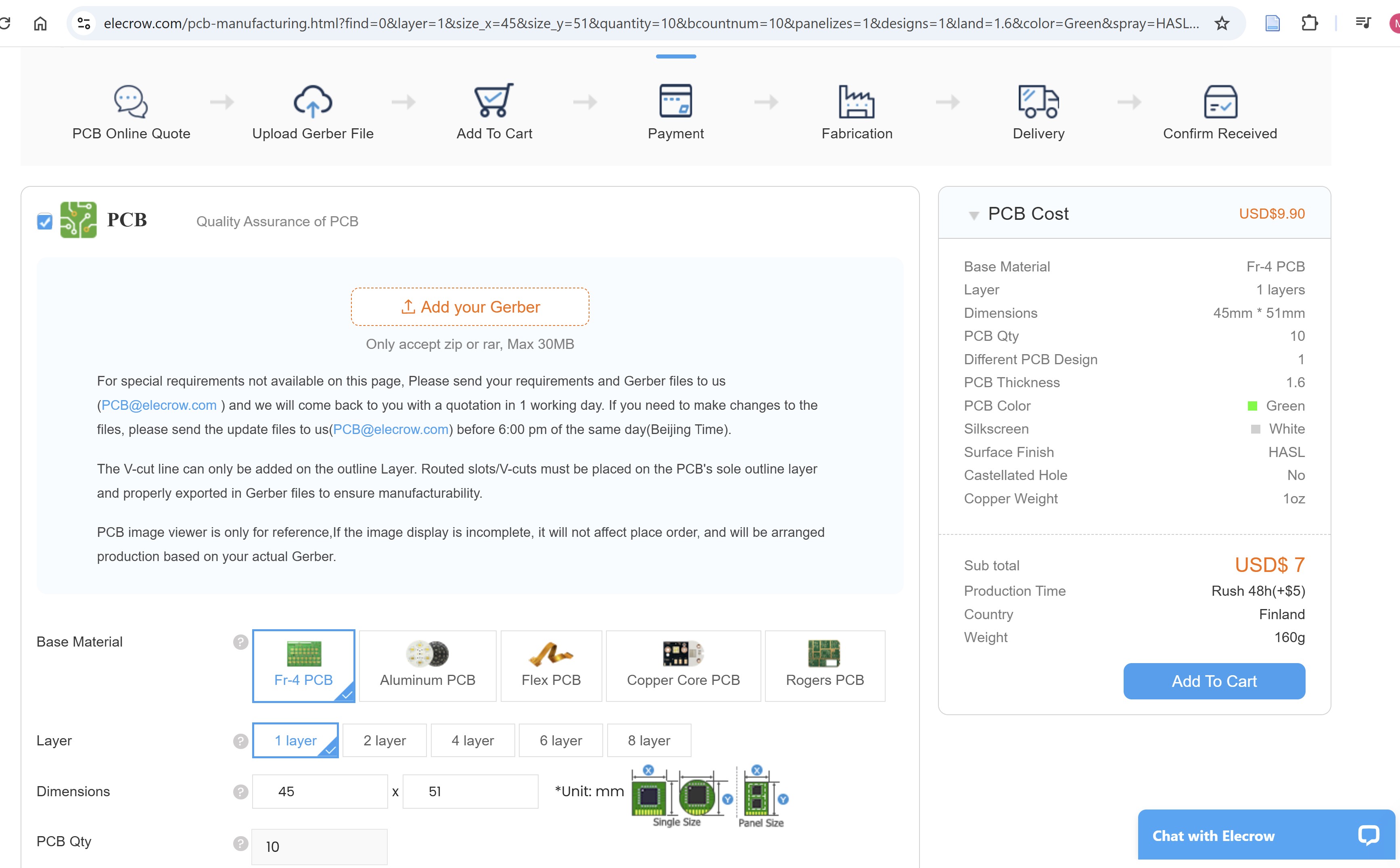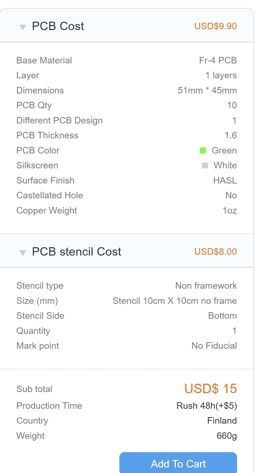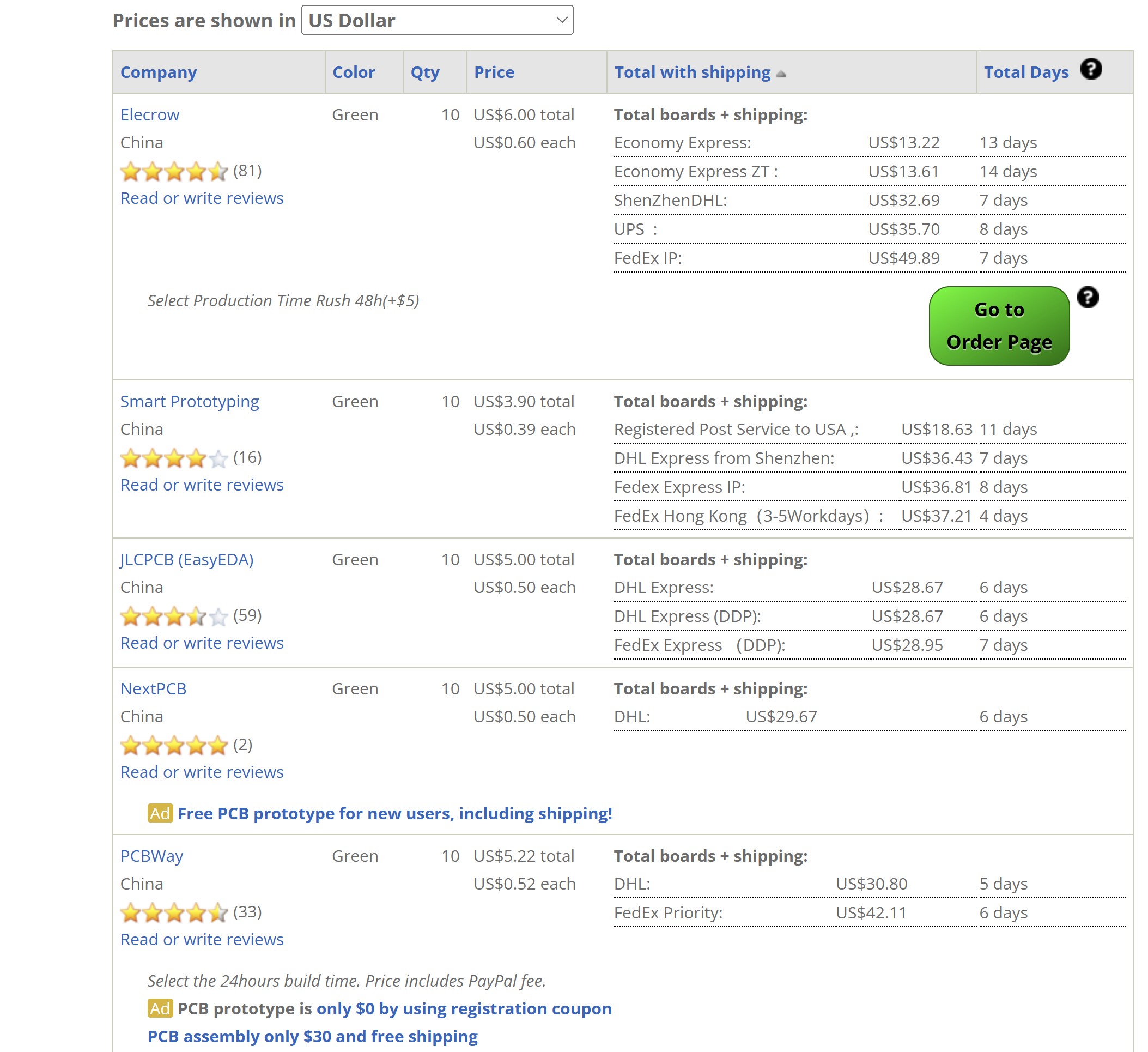Then we just review the price of PCB from different companies and delivery time. We selected the elecrow company.