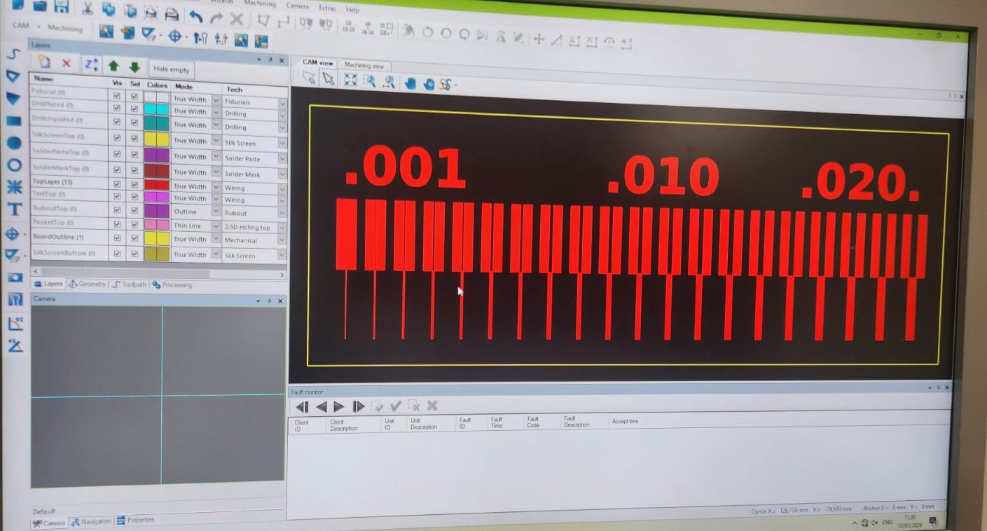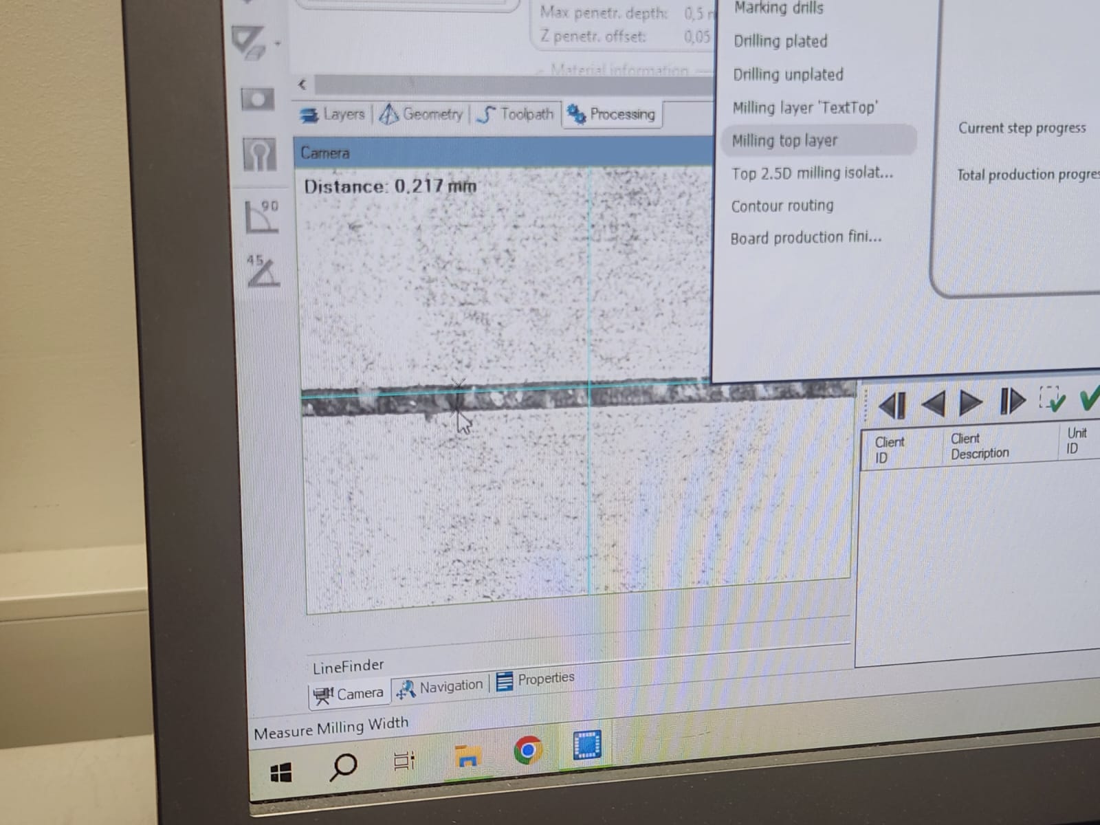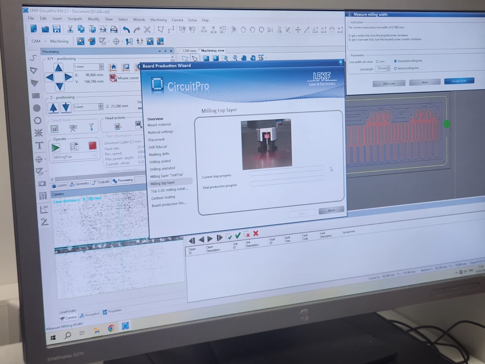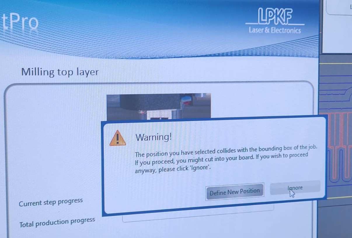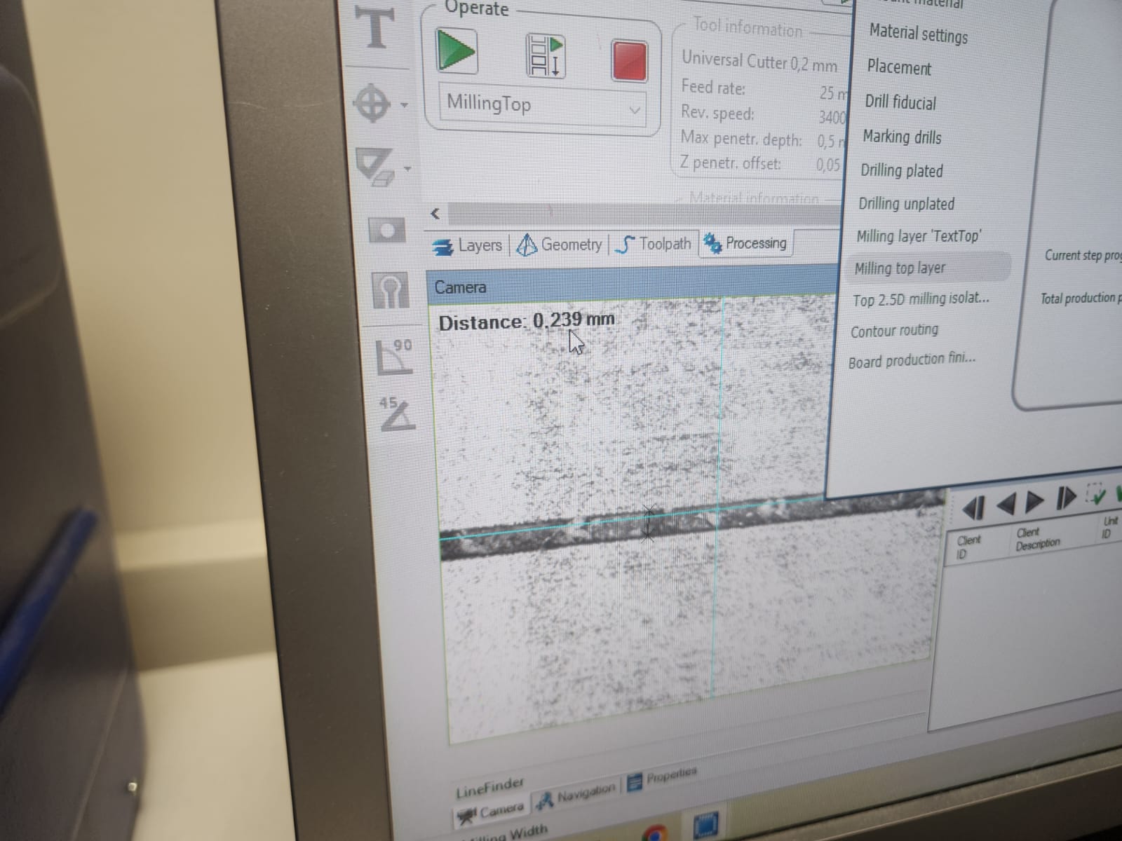 After set the milling bit to 0.2 mm, milling process started: