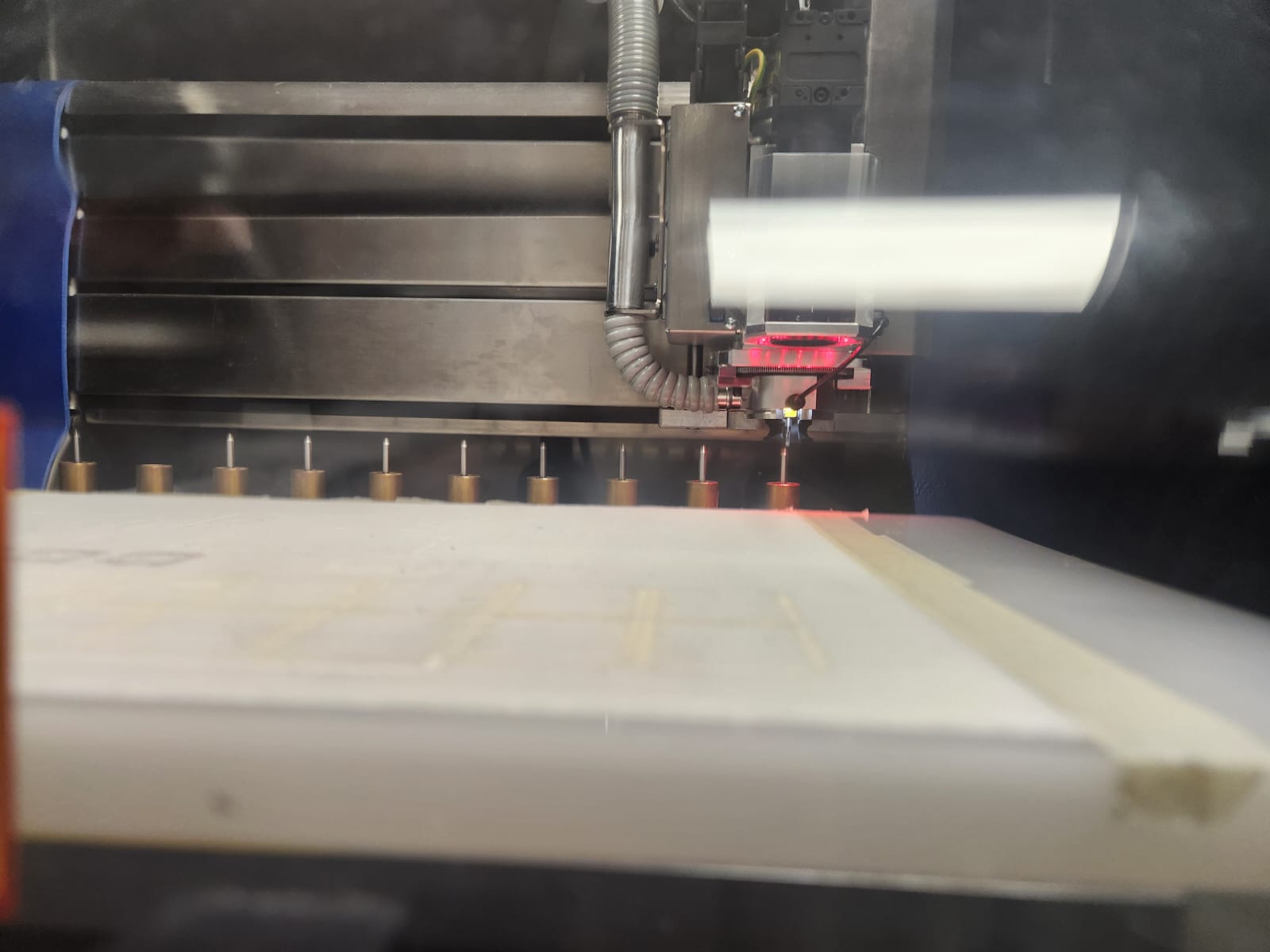 We chose and fixed the FR4 board in machine plate, and we taped it for not moving. The machine has also vacuum.