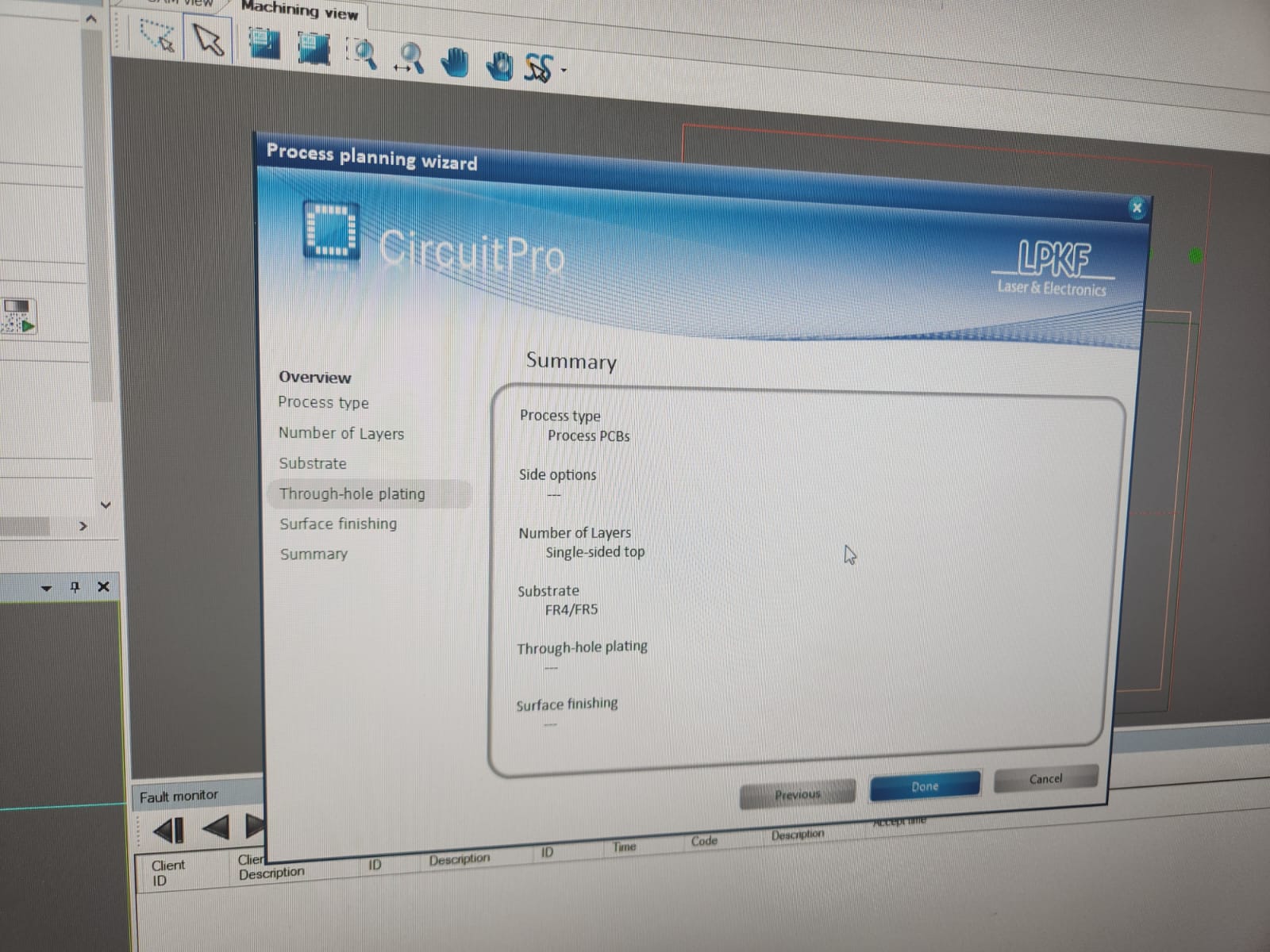 To start setting up the process, we started Process wizard and chose a single side PCB: