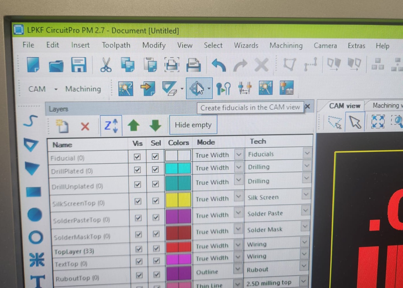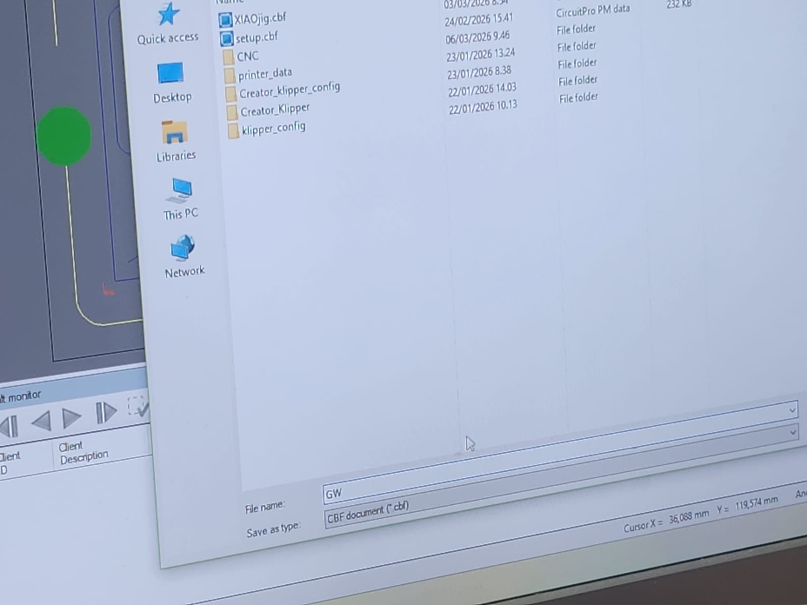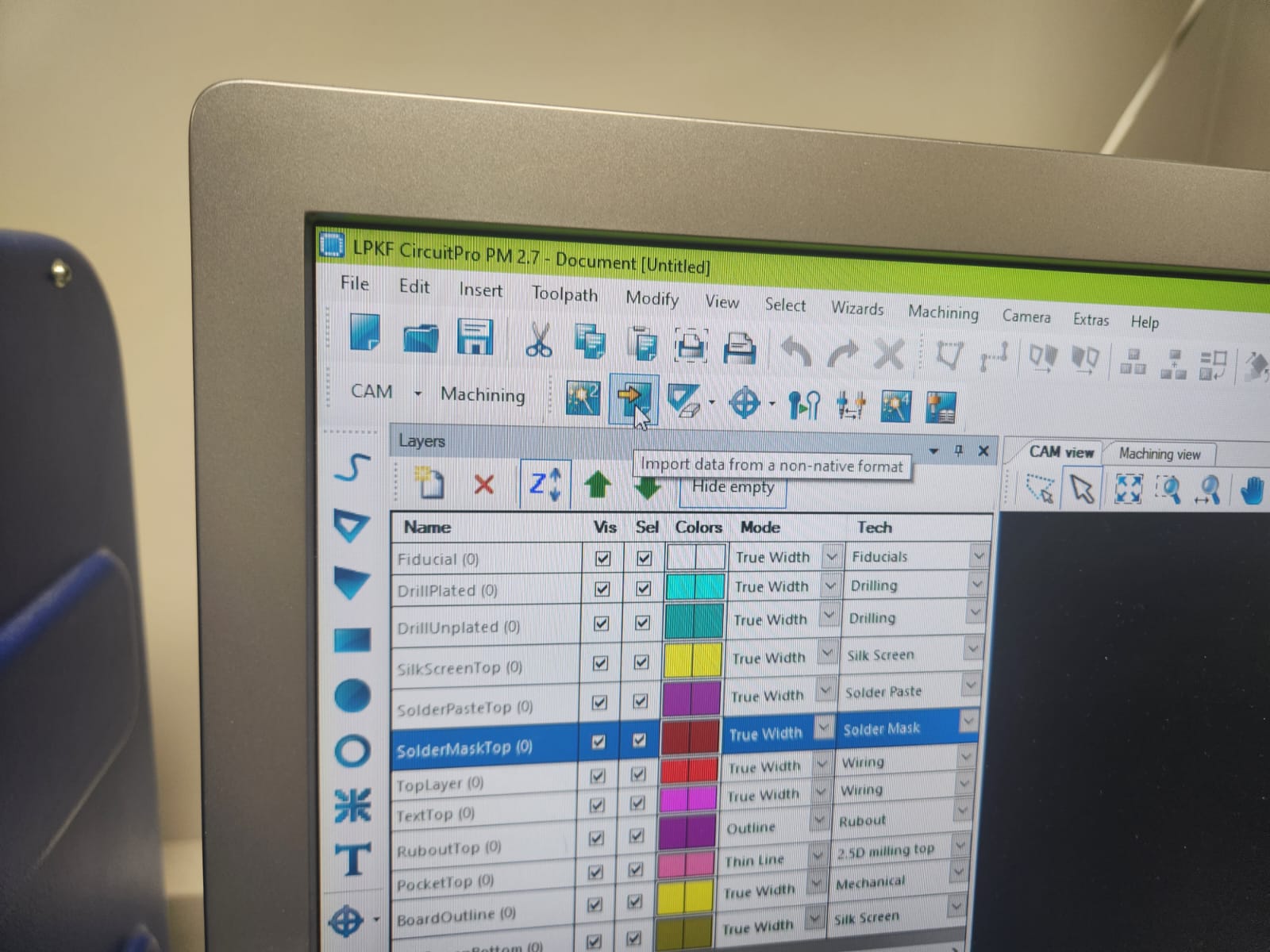 We opened up the CircuitPro software on the computer for milling machine: