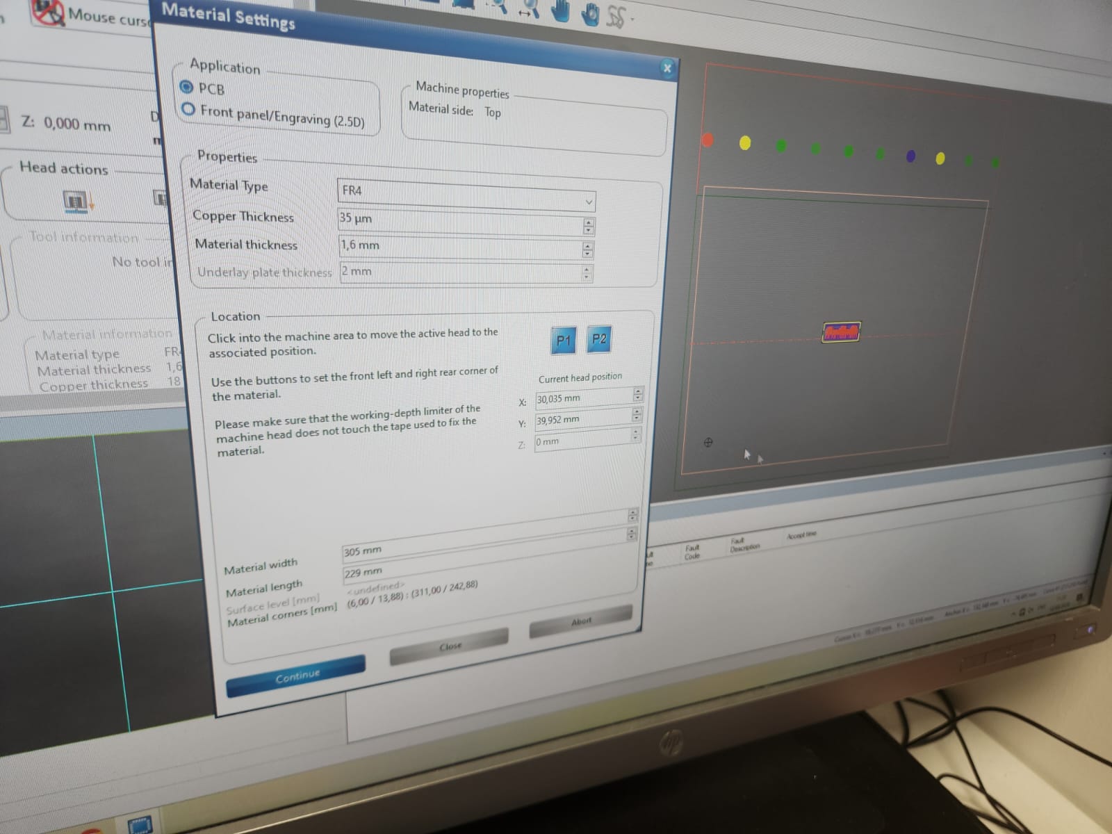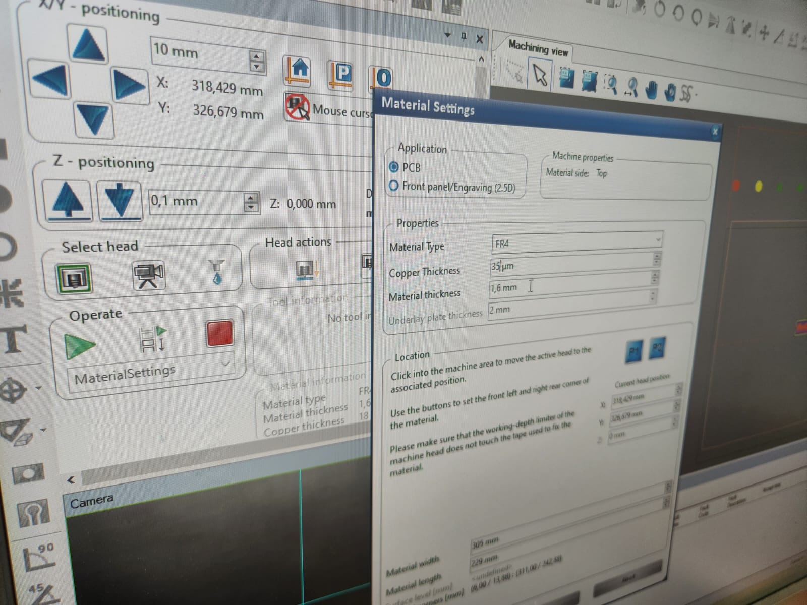Selecting the location of the board for milling: