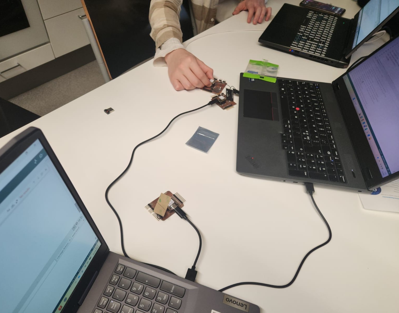 In this week’s group work, our task was to send a message between two projects. We used wireless ESP-NOW communication between three ESP32-C3 boards using the help of Juha and read this tutorial. WE used our boards that we designed and made in Week06 and Week07. ESP-NOW is a fast wireless protocol made by Espressif Systems. It lets ESP32 boards send small messages (up to 250 bytes) directly to each other without needing Wi-Fi or an internet connection.