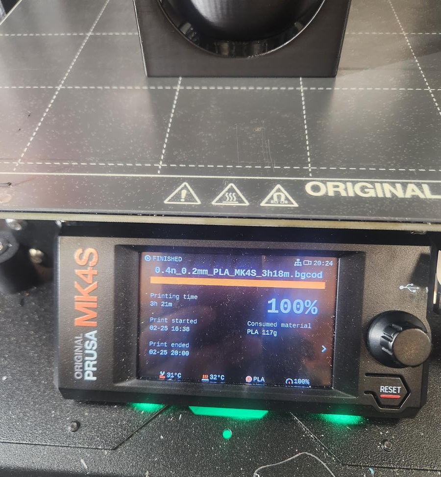 To further test the design limitations, I reduced the overall model dimensions by a factor of 4 and printed the smaller version. The purpose was to evaluate minimum feature size, tolerance, and printer capability at reduced scale.