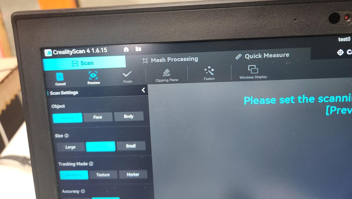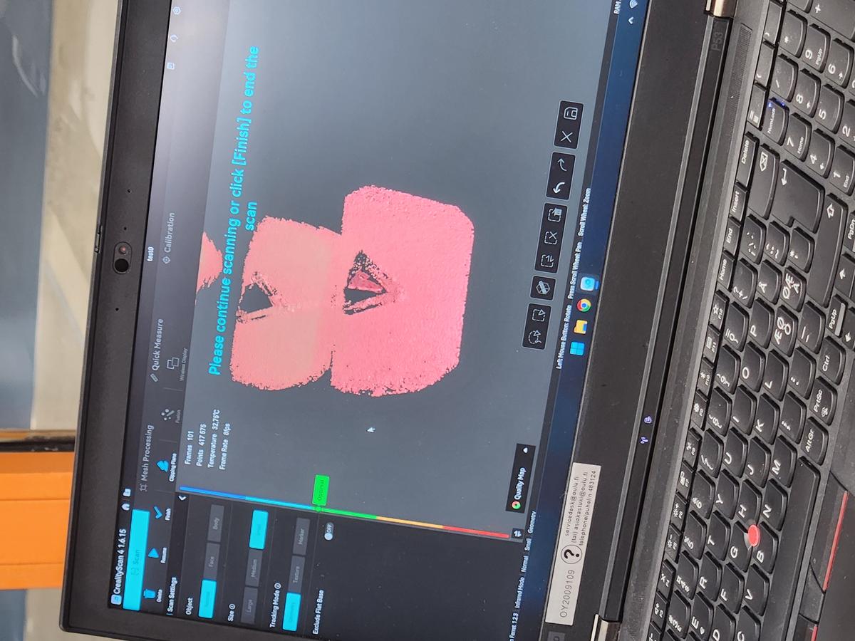 The scanner was connected via USB and controlled using Creality Scan software.