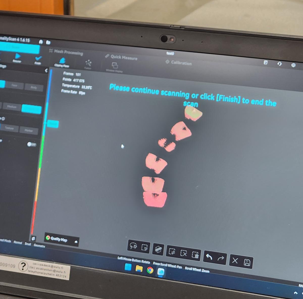 This showed that scanning quality heavily depends on lighting, object texture, and stable tracking.