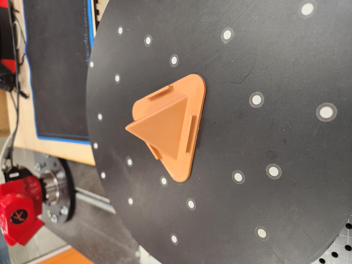 For the second experiment, I scanned a small orange triangular pyramid model mounted on the motorized turntable. The object consists of: