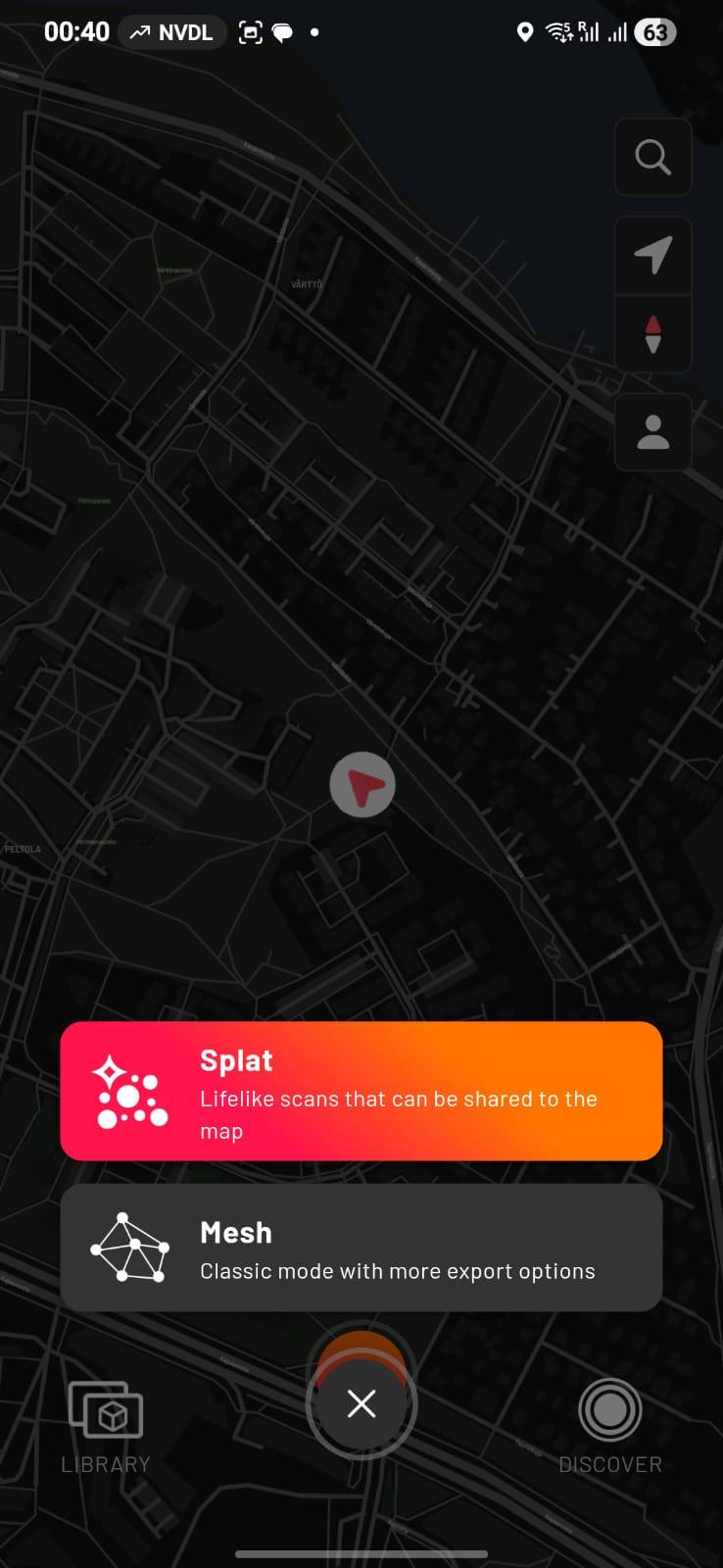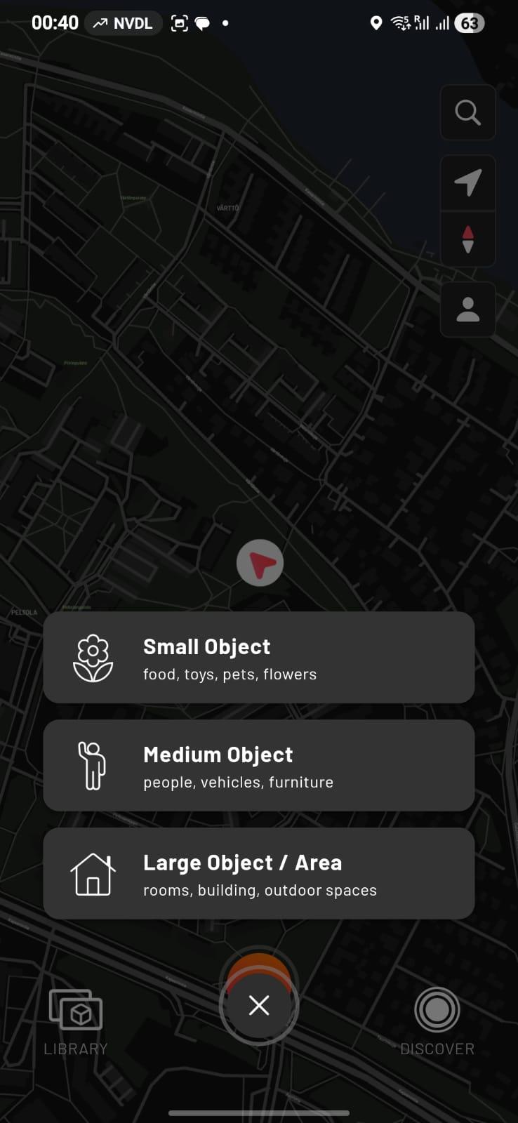 The mobile 3D scanning application was briefly explored to understand its interface and available scanning modes.