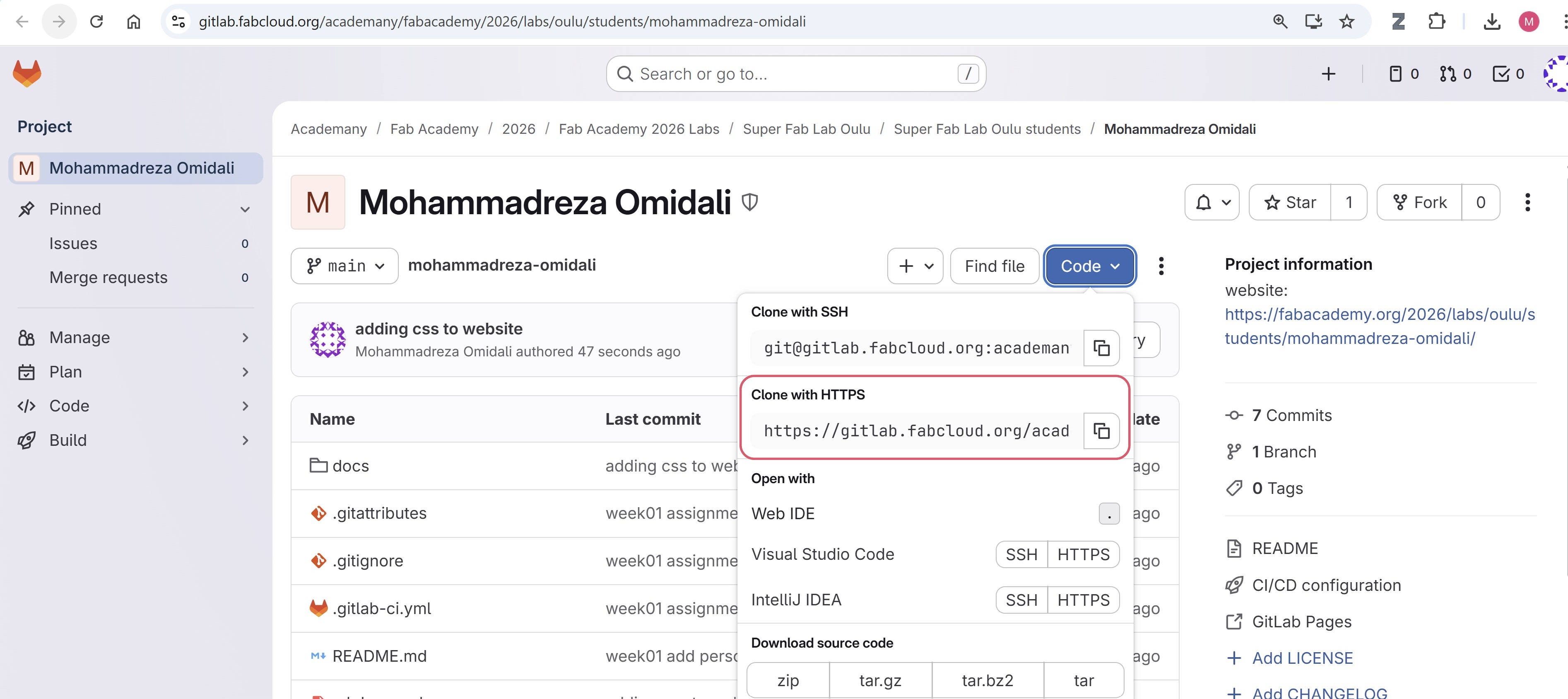 GitLab is a powerful tool that uses a Version Control System (VCS) for project management. To start the Fab Academy course, I understood that knowing some basic Git syntax is enough to start the Fabacademy.