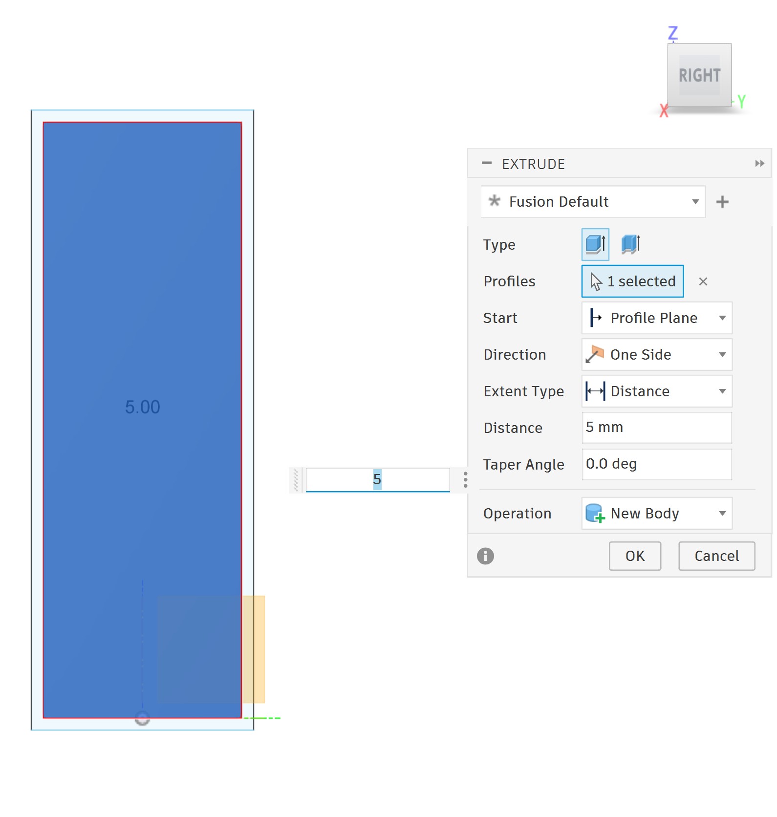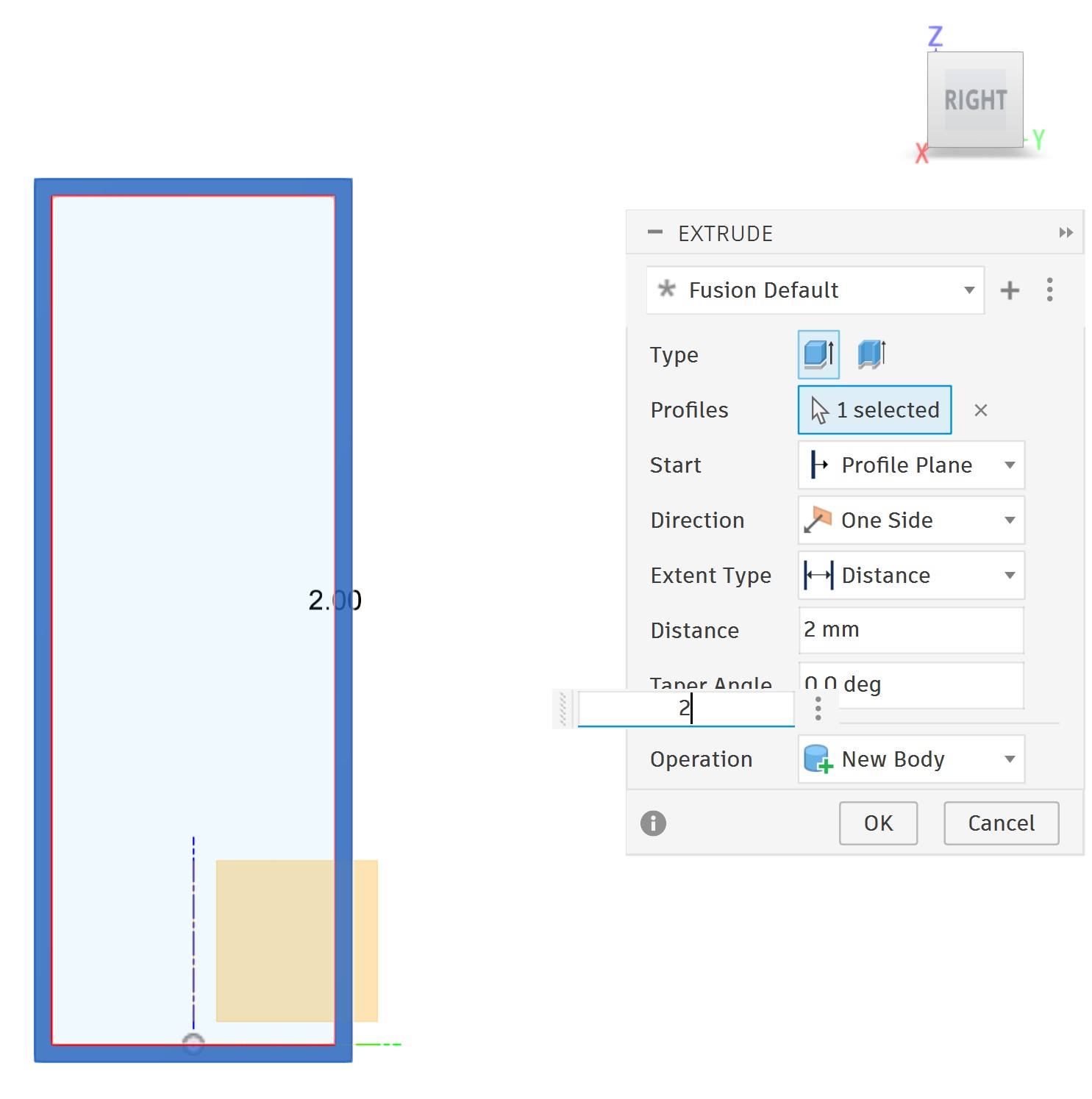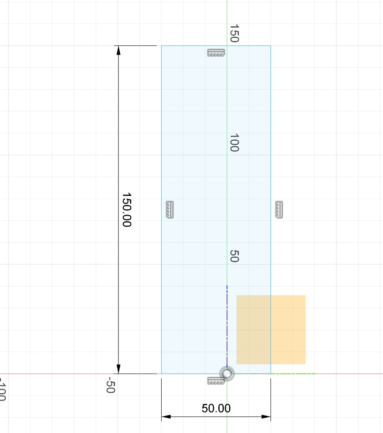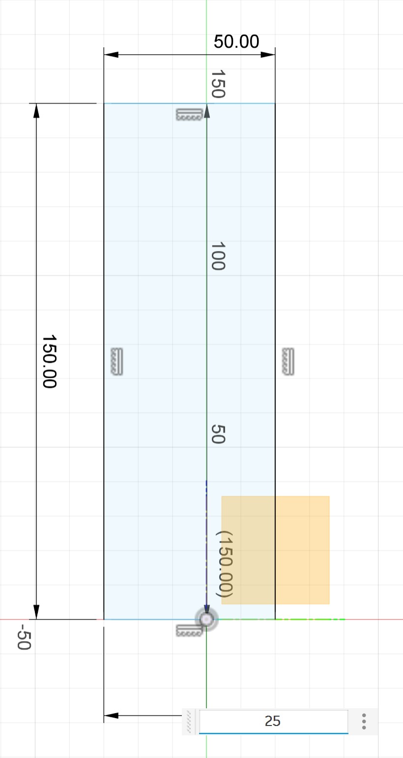 To get an exact dimension for the next feature, I drew another rectangle with the Line tool since it was easier to control the dimensions precisely: