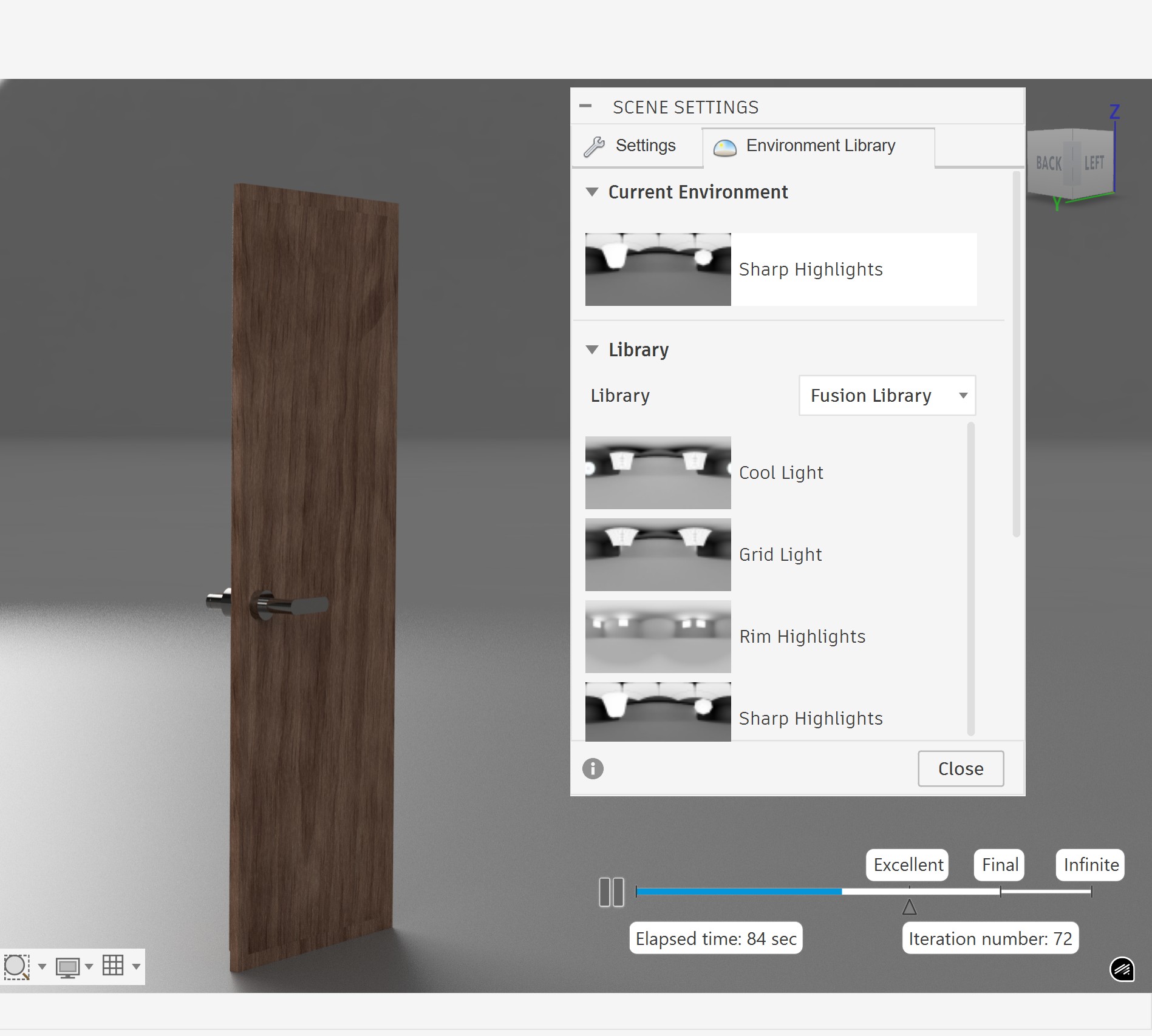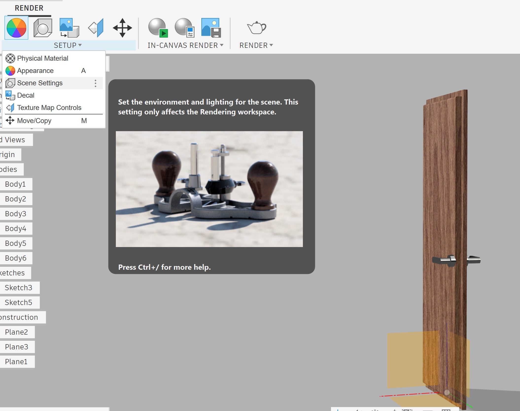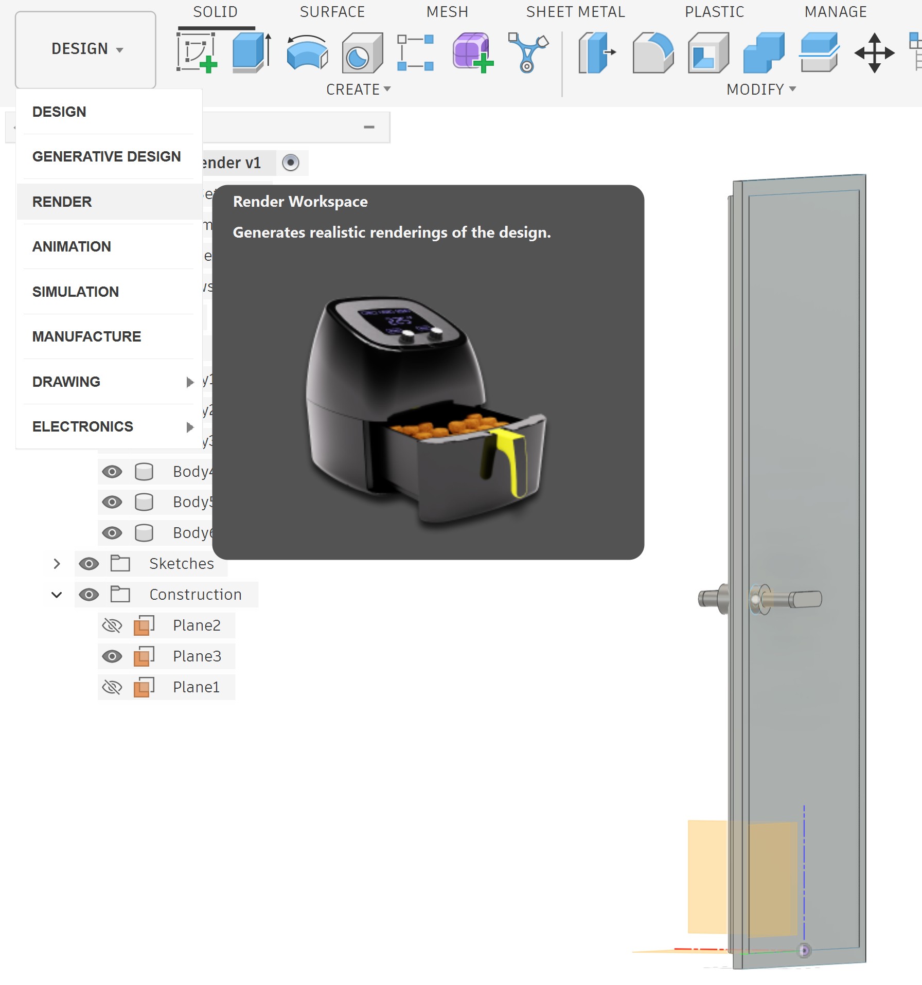 To render in Fusion 360, I designed a door based on one that is currently in my house.