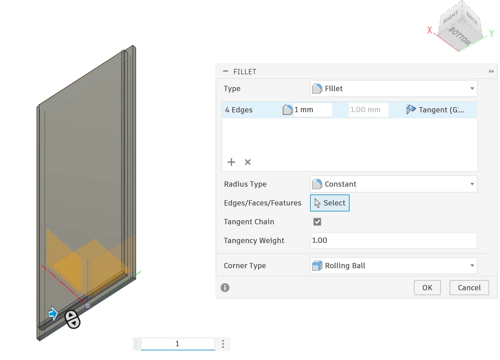 Finally, I used the Fillet tool (hotkey F) to smooth the edges. Fillets both improve the aesthetics and help distribute stress, making the printed part less likely to crack:
