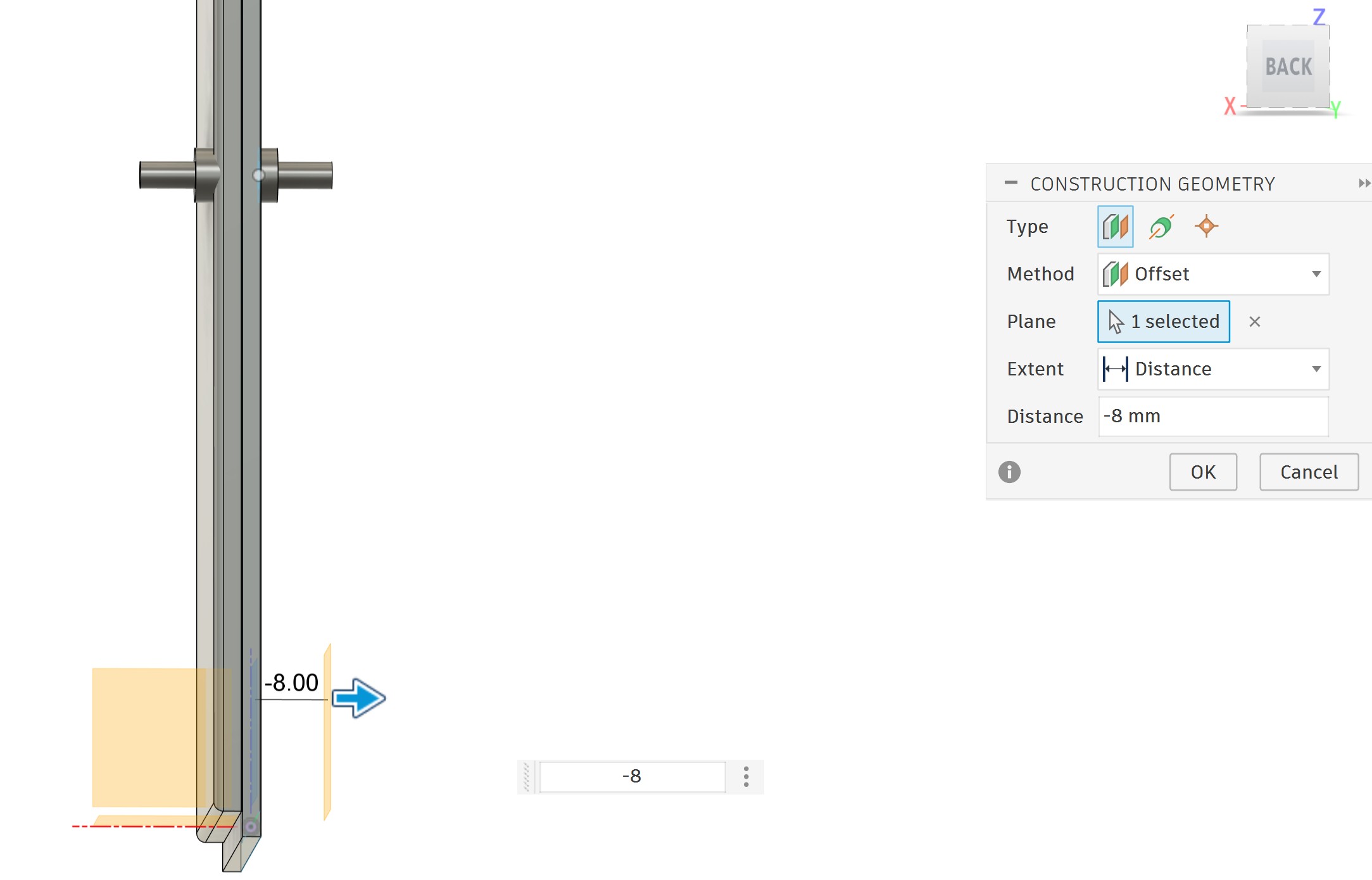 Next, I created a construction plane along the Z-axis at a distance of 5.6 mm: