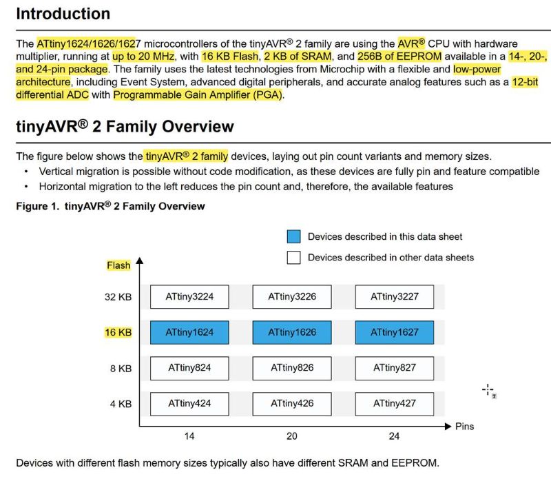I have some experience reading datasheet, I randomly went through to a microcontroller on the Fabacademy provided on its webpage for this week. Here is the micocontroller - ATtiny1624/1626/1627.