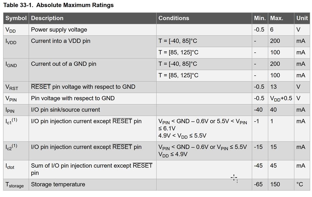 Basically in the first few pages of the datasheet some basic and important information can be found, I highlighted them here: