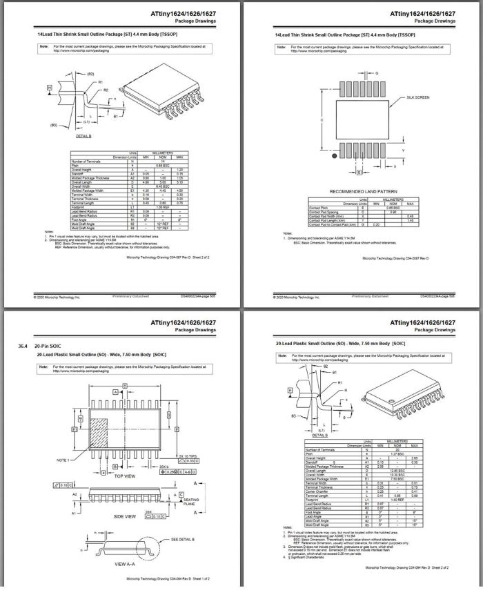 The ATtiny1624/1626/1627 microcontrollers of the tinyAVR® 2 family use the AVR® CPU with hardware multiplier, running at up to 20 MHz, with 16 KB Flash, 2 KB of SRAM, and 256B of EEPROM available in 14-, 20-, and 24-pin packages. The family uses the latest technologies from Microchip with a flexible and low-power architecture, including Event System, advanced digital peripherals, and accurate analog features such as a 12-bit differential ADC with Programmable Gain Amplifier (PGA)^1.