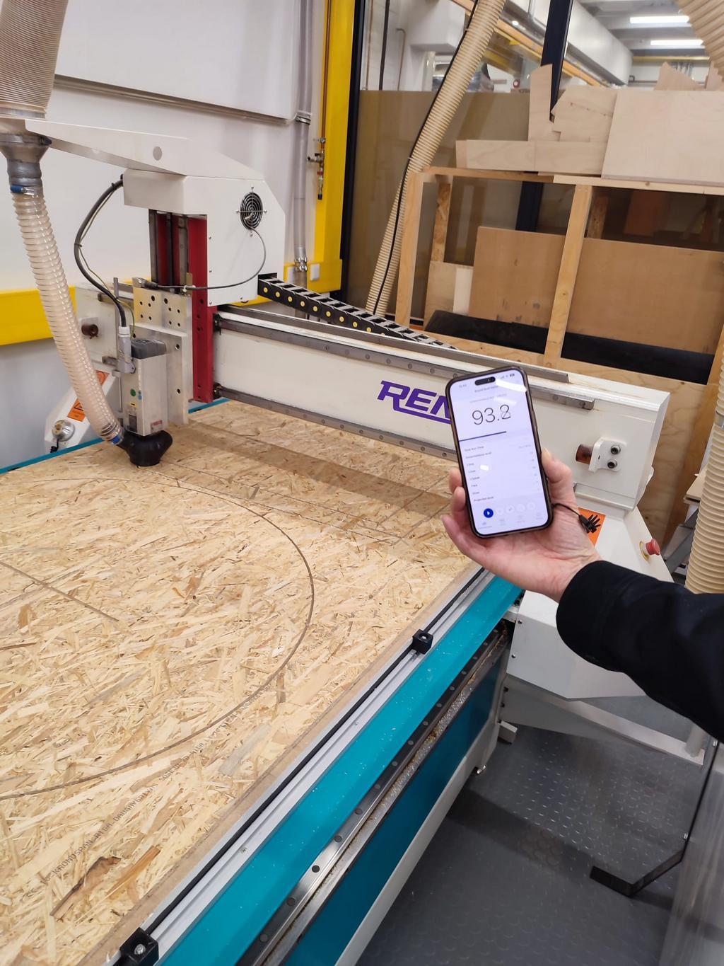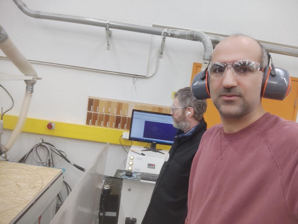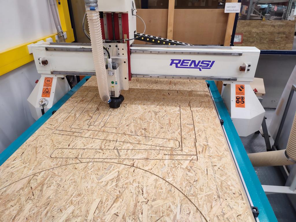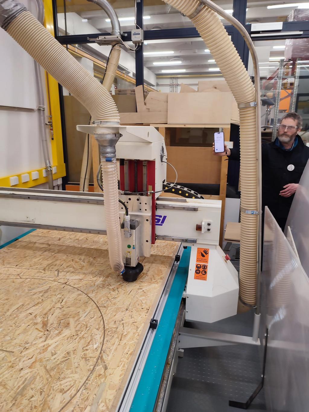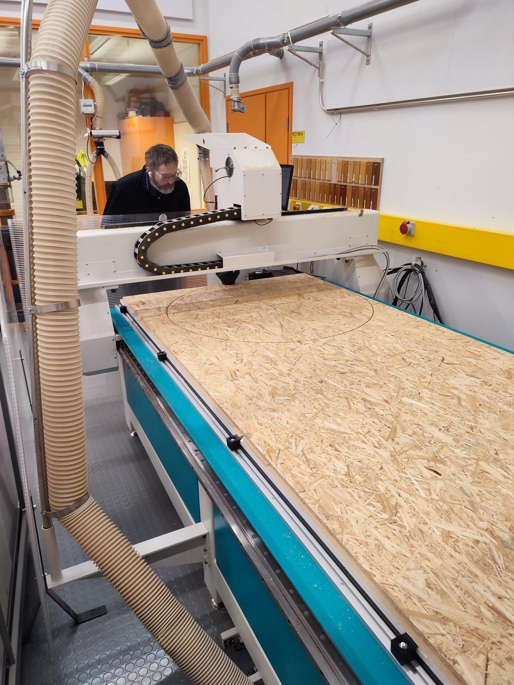 The cutting was in progress, and I was taking photos while Antti was checking the machine: