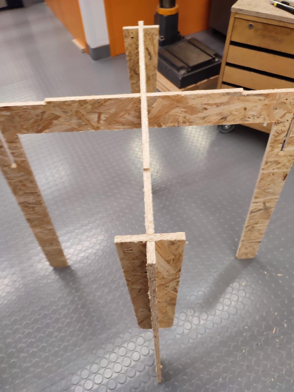 At this point, the table and legs were ready, but I was not fully confident about the stability. So I decided to make the structure stronger.
