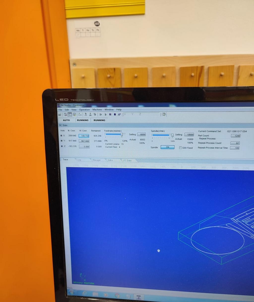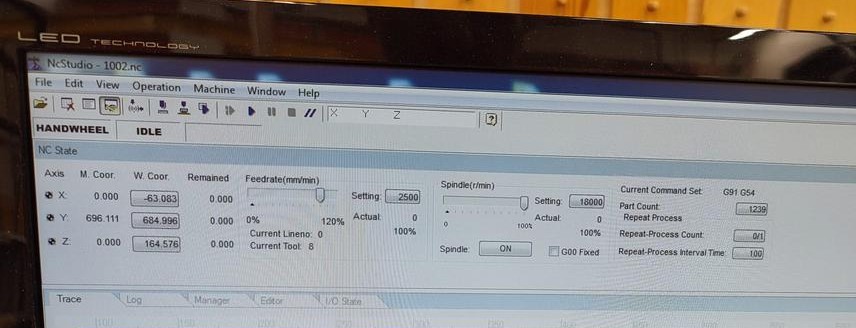 Many of the steps are clearly explained in the group work. First, I switched on the machine and started the NcStudio software: