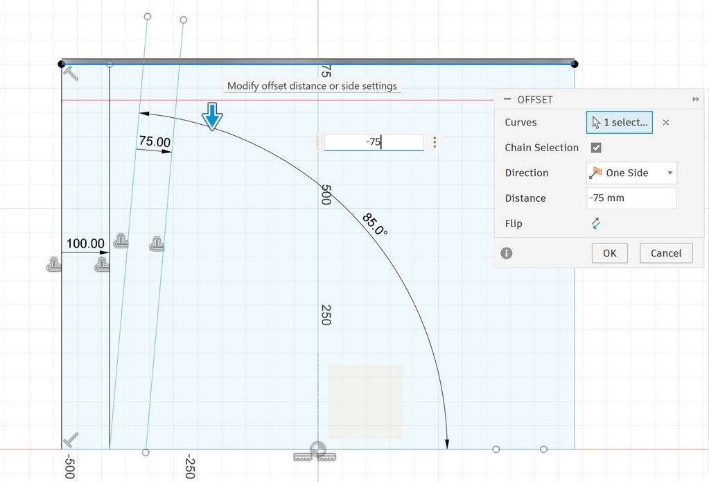 And then extrude it by thickness of material and then extrude the both sides of it by 75 mm: