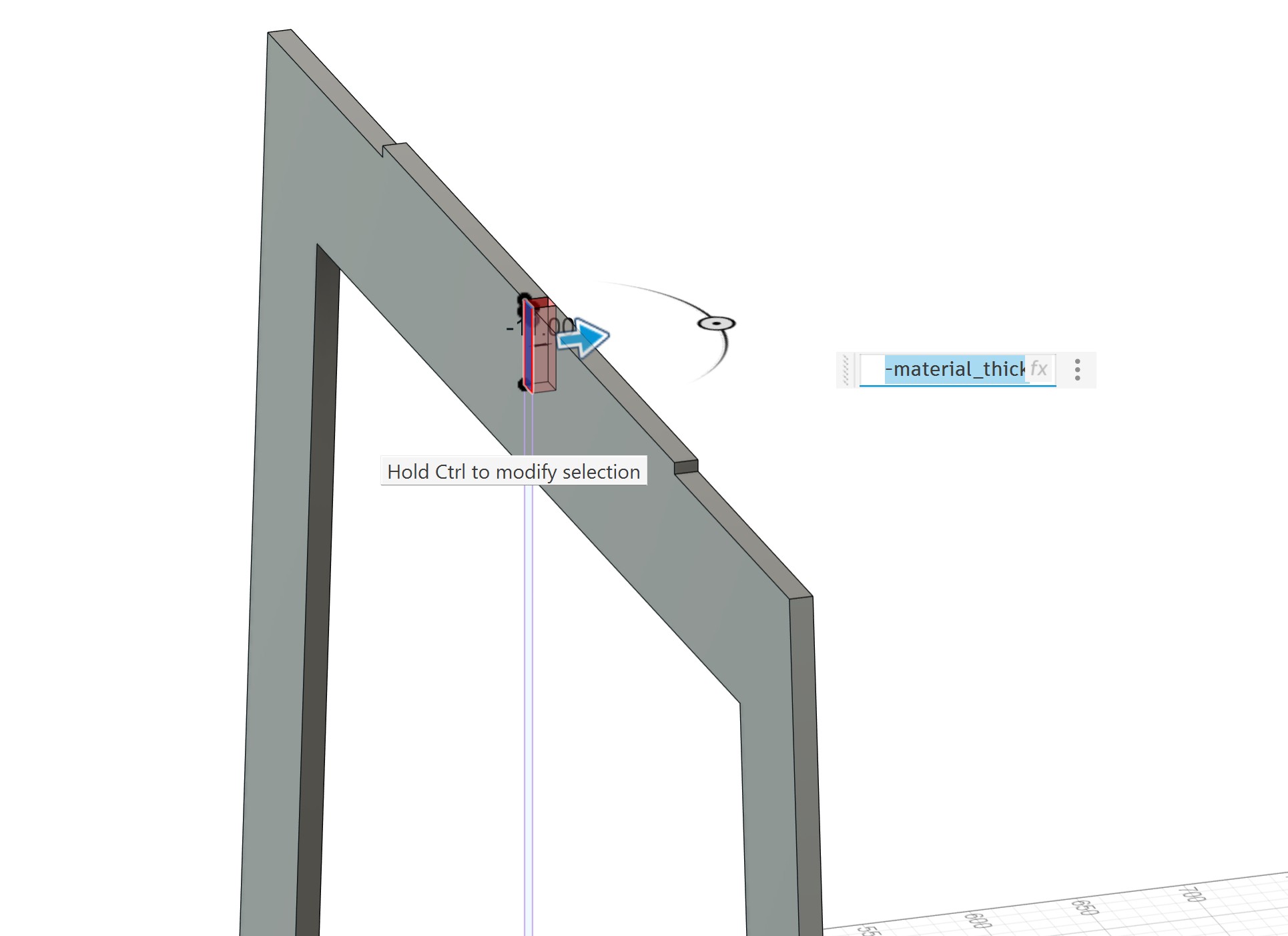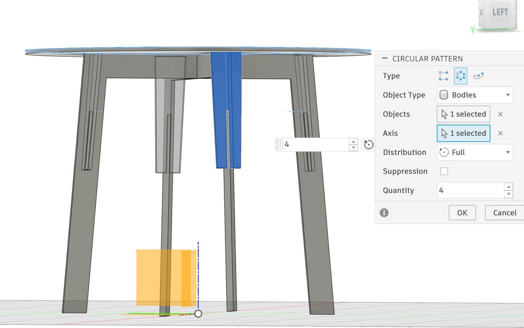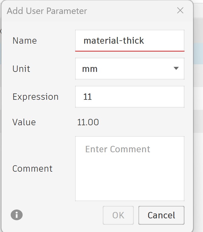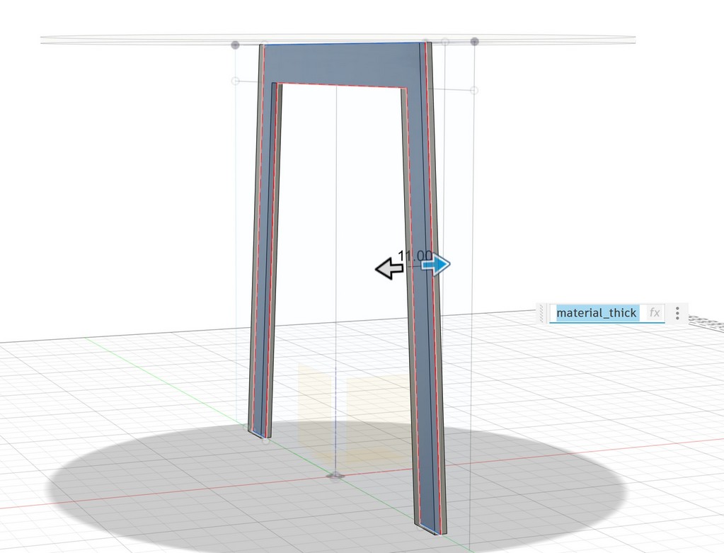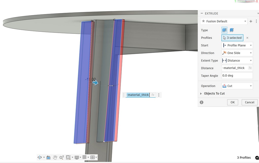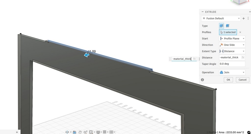 then define the thickness of table same as material thickness available in the FabLab, I will define it using parameter because later I will need it for other parts extrude: