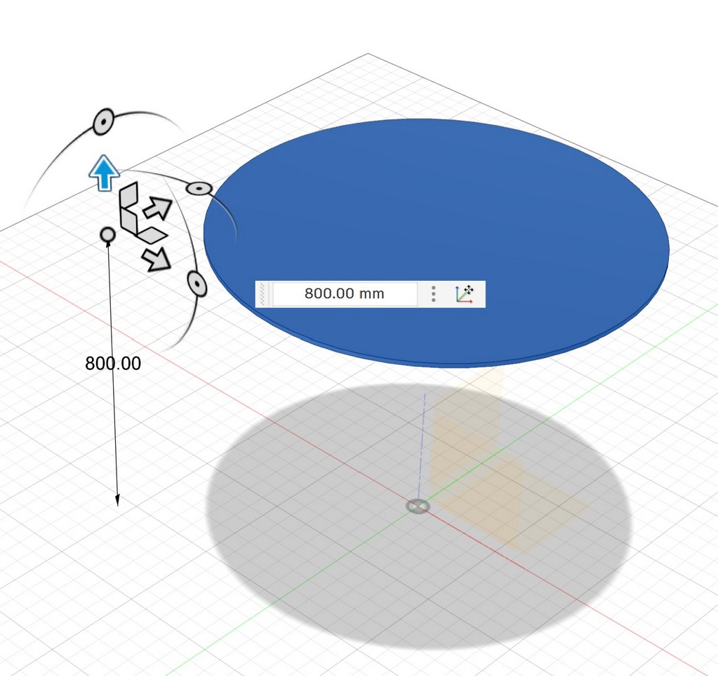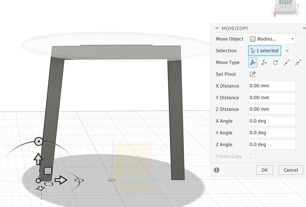 Now the toptable is ready and it is on the ground (Z=0), I will move to proper height for example (800mm). Click the body and use shortcut M: