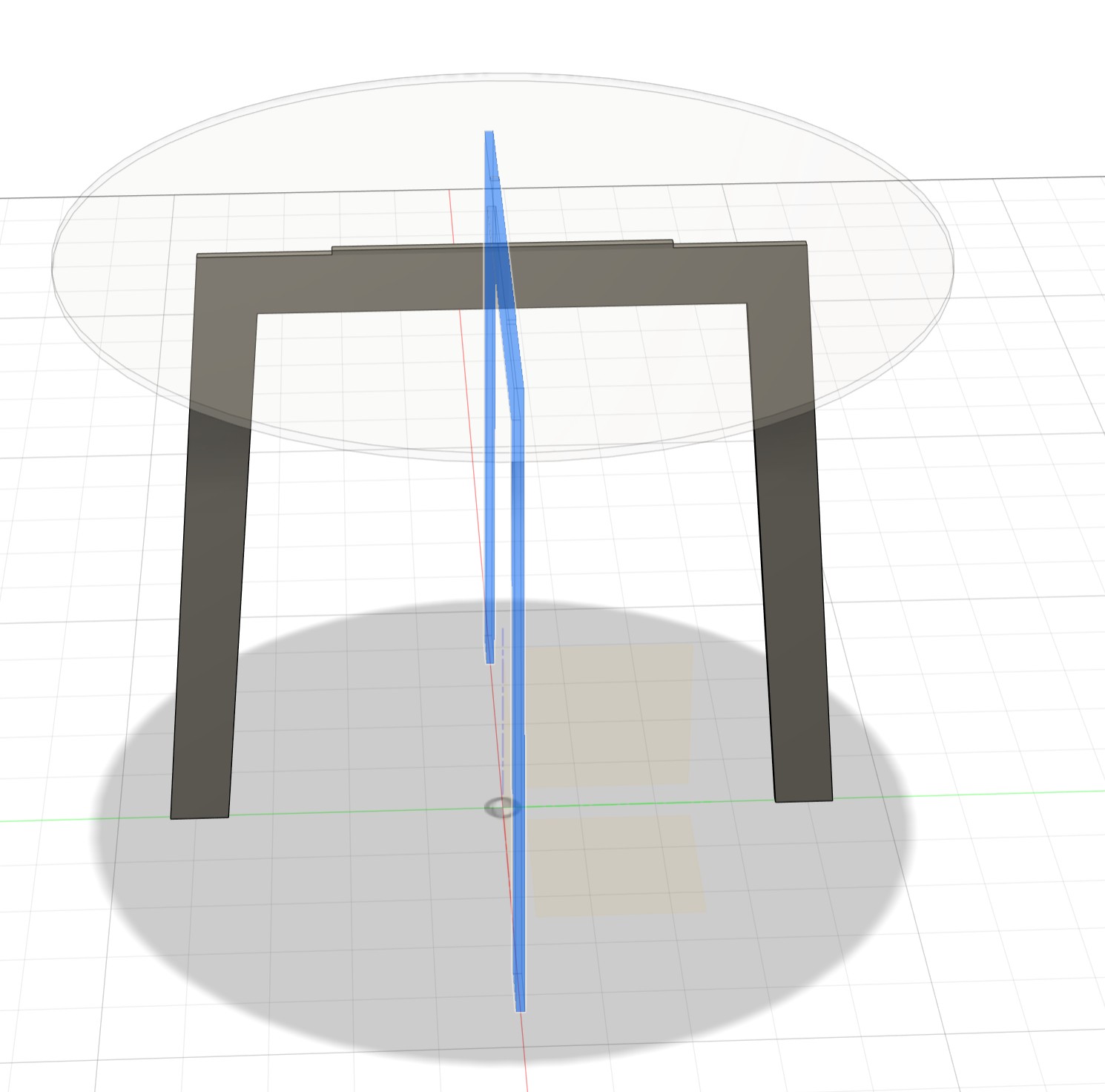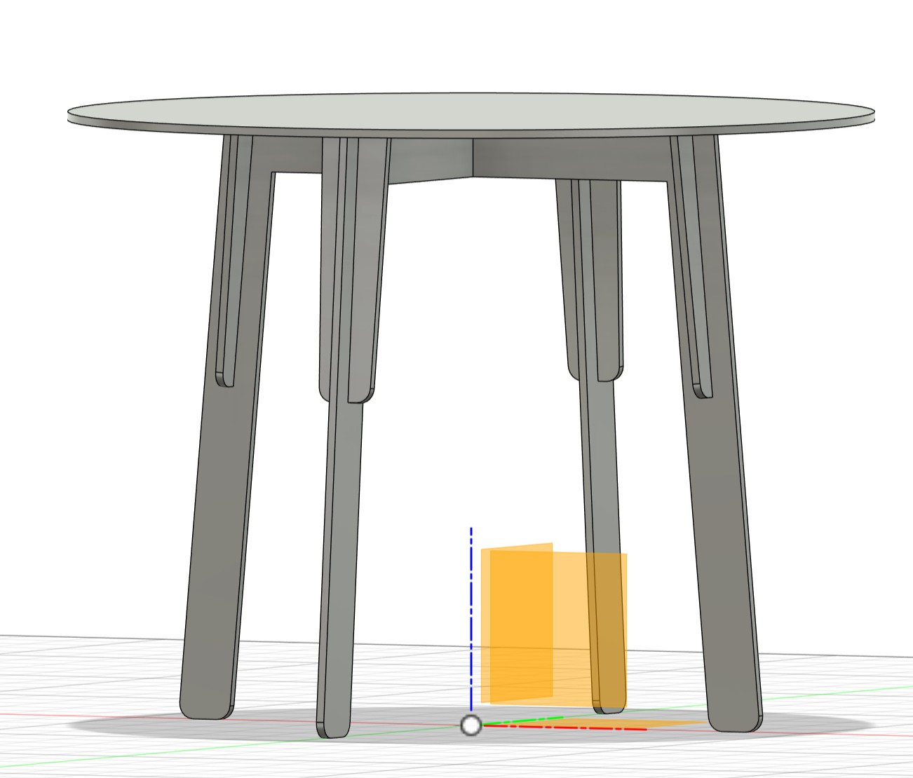 This leg now is flat, but I need a kind of interlocking slots, create a new sketch on the infront of the leg profile: