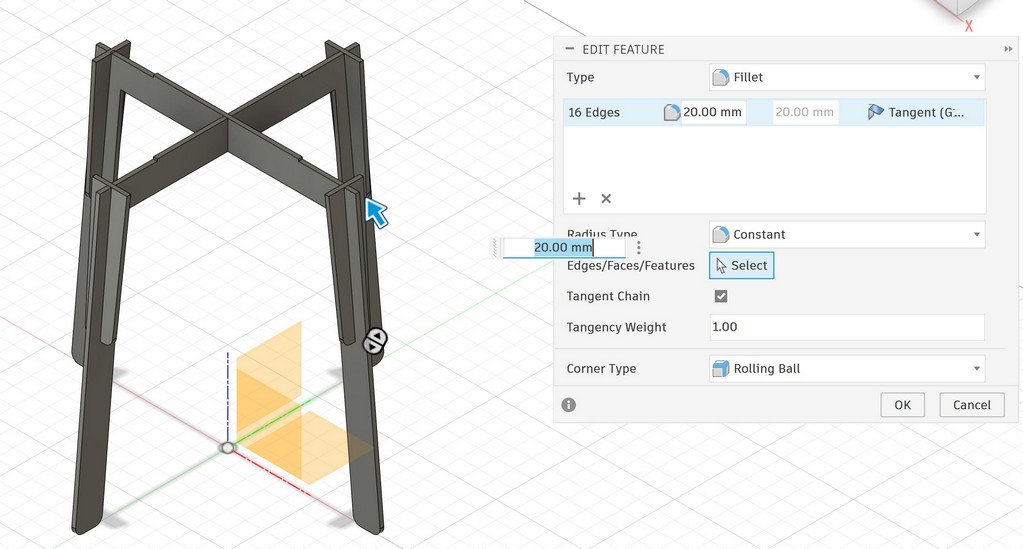 Now, I will use Fillet to make sharp corner smoothing: