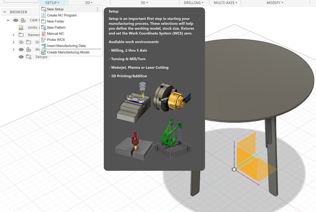 Then, it is time to go to Manufacture workspace and prepare the model for CNC machine: