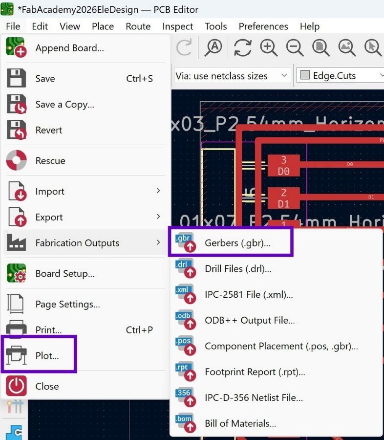 After plotting, I verified the output in KiCad's Gerber Viewer before moving on to fabrication with the LPKF machine.