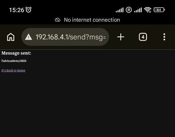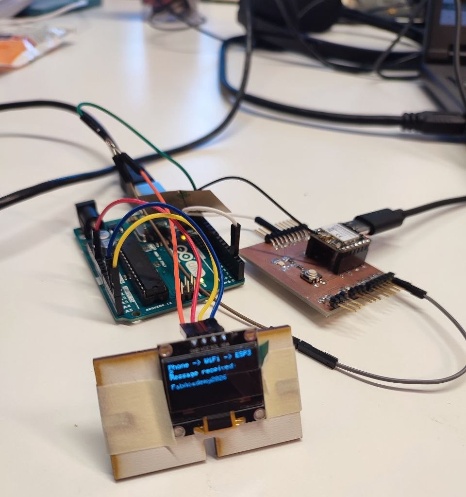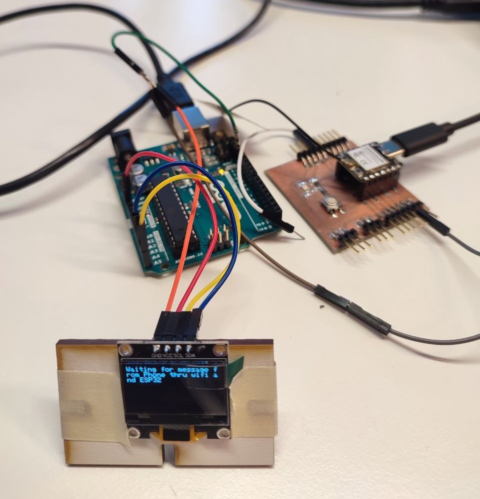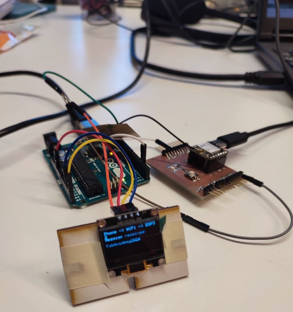 In the second setup, my goal was to control an OLED display connected to an Arduino Uno using my phone via Wi-Fi through a PCB board that I made in the output device, week10.