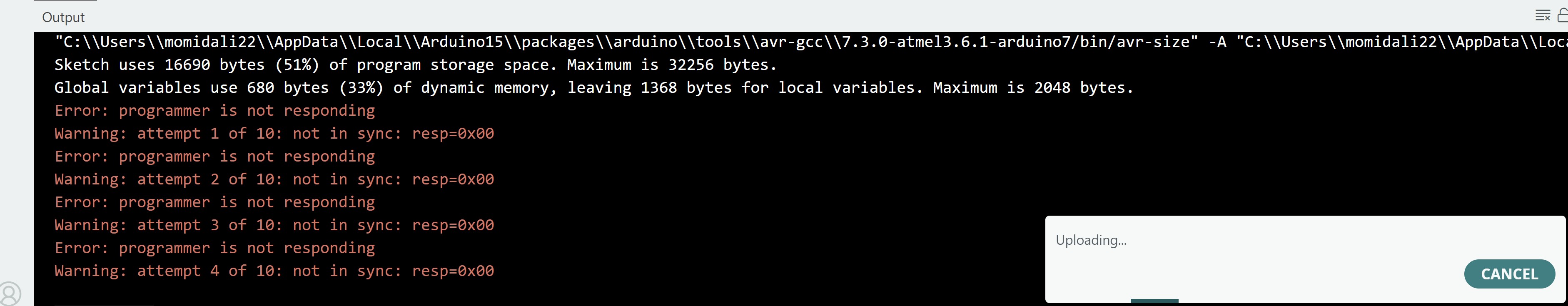 The issue was that the UART serial connection was still connected before programming the microcontroller. It must be disconnected before uploading the code. After successfully programming the board, I reconnected the UART serial port and everything worked correctly.