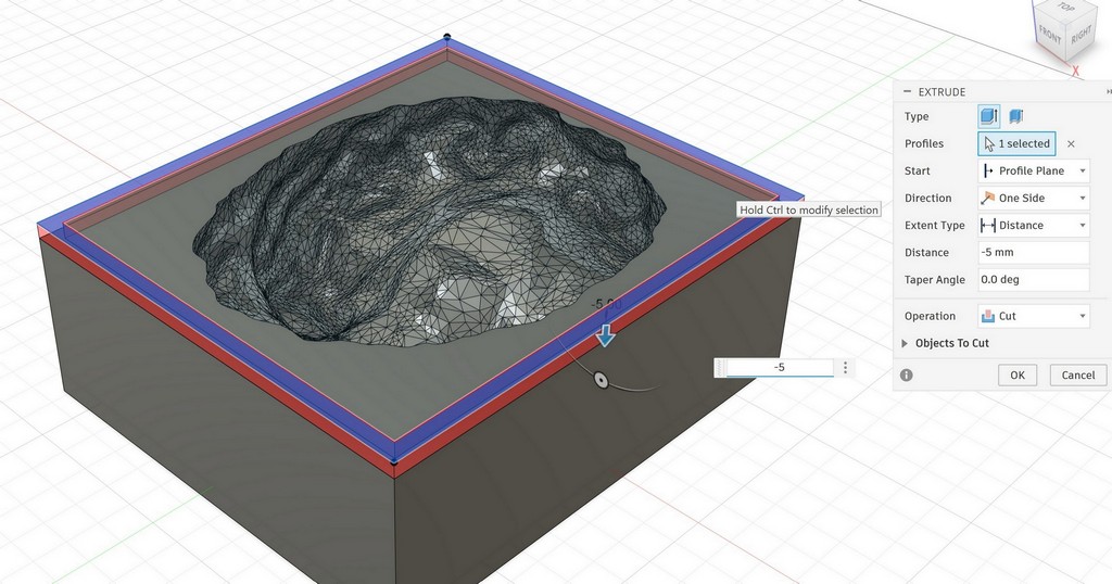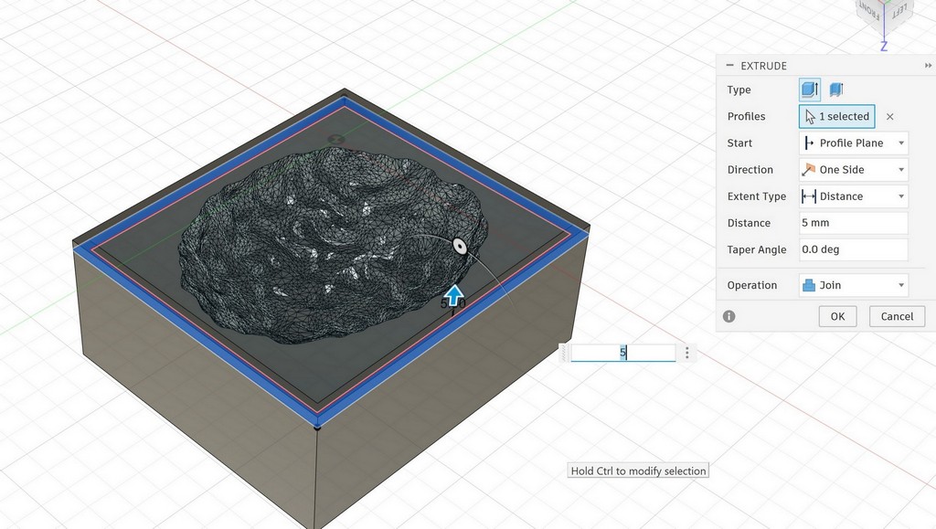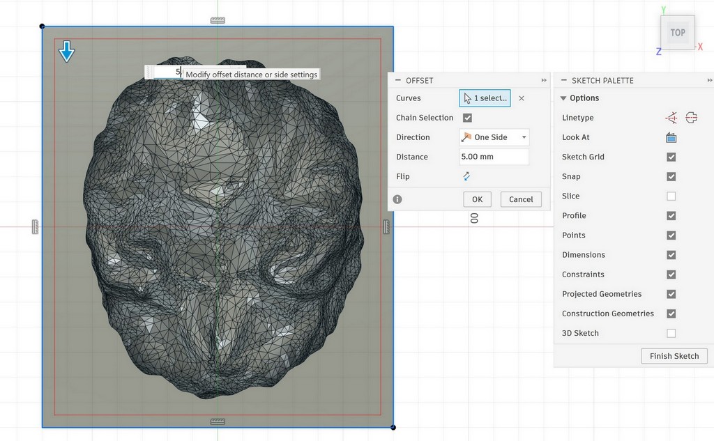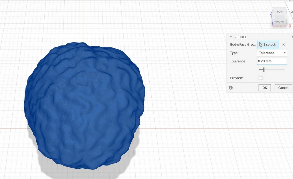 Then, I exported the new design from Blender and imported it back into Fusion 360 using insert mesh. Since Fusion 360 recommends using mesh models with less than 10k triangles, I reduced the mesh as much as possible without losing too much detail.