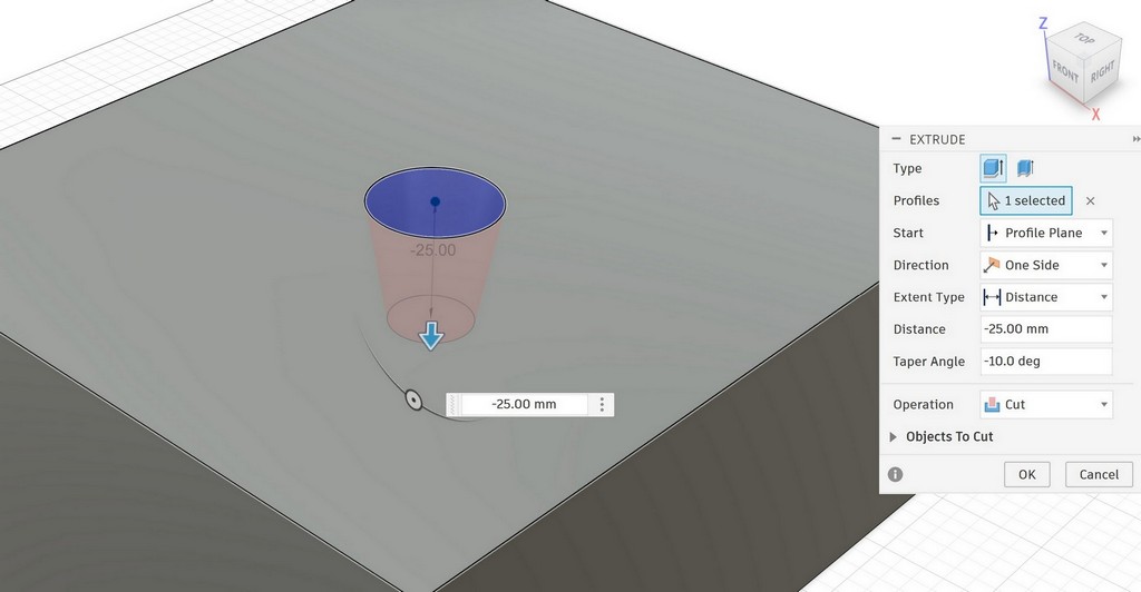For the bottom part, I used the offset tool and extruded the keys to -5 mm: