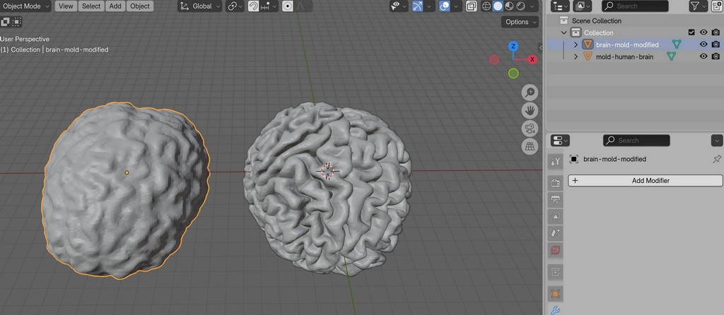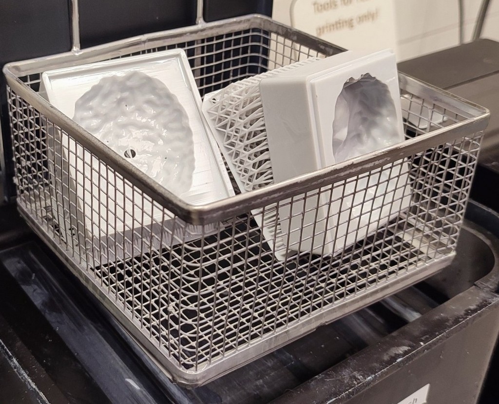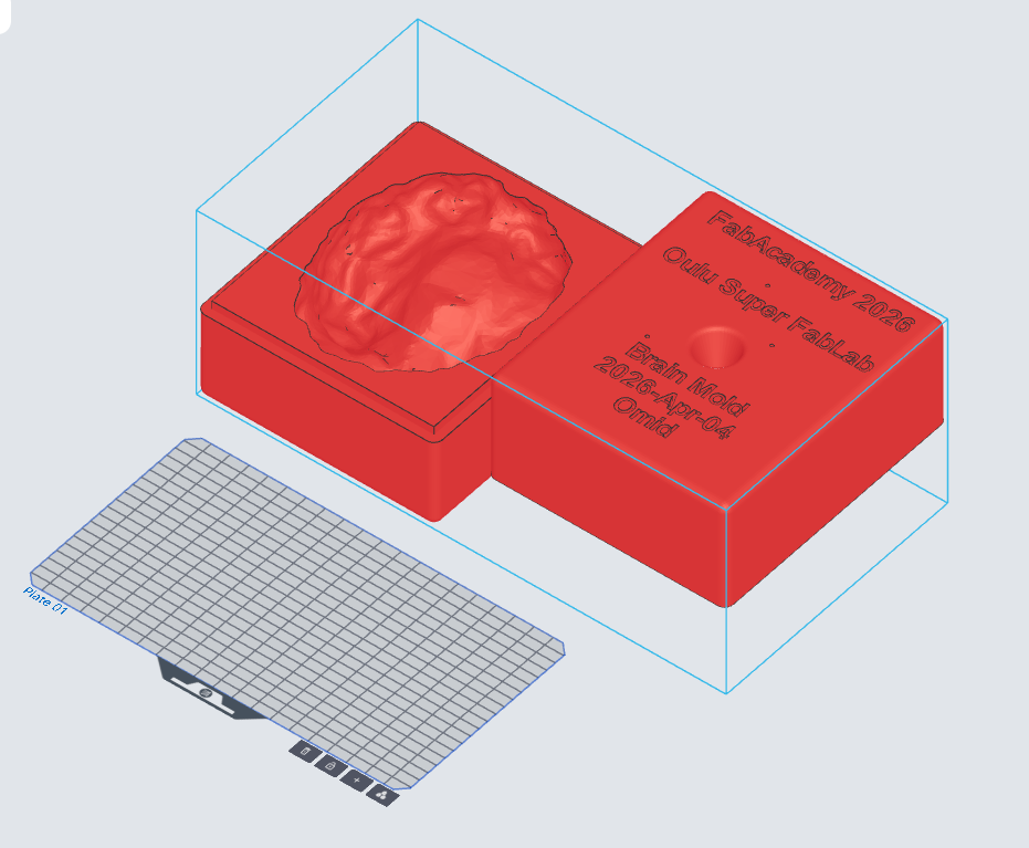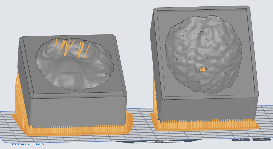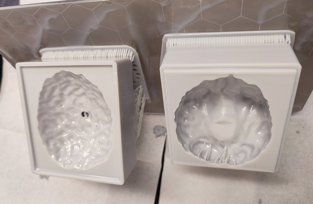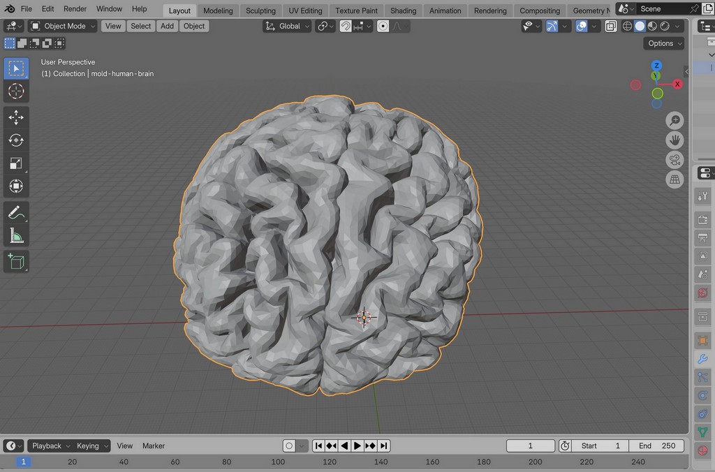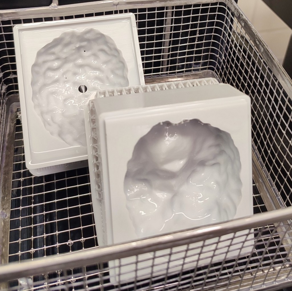 After preparing the brain model, and before designing the mold, I checked it with Toni. He mentioned that the many cavities and details could make it difficult to remove the cast cleanly,