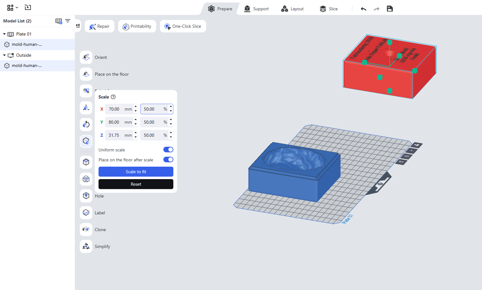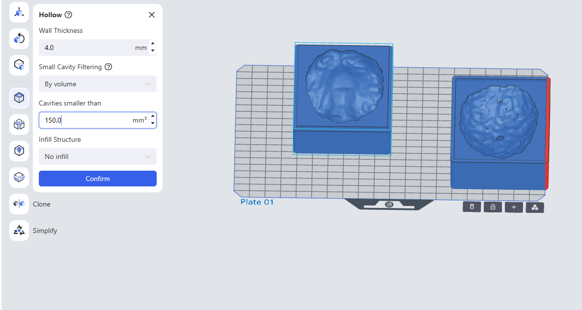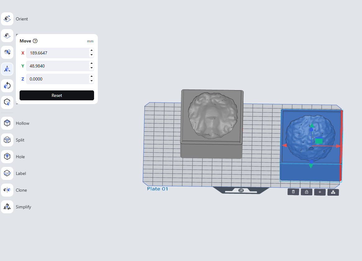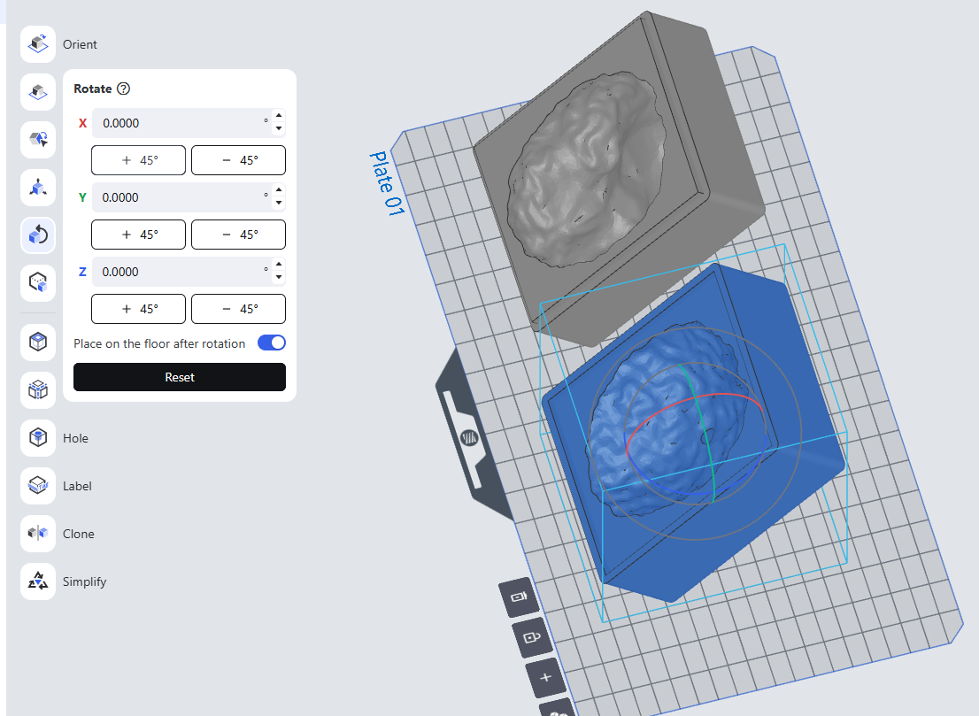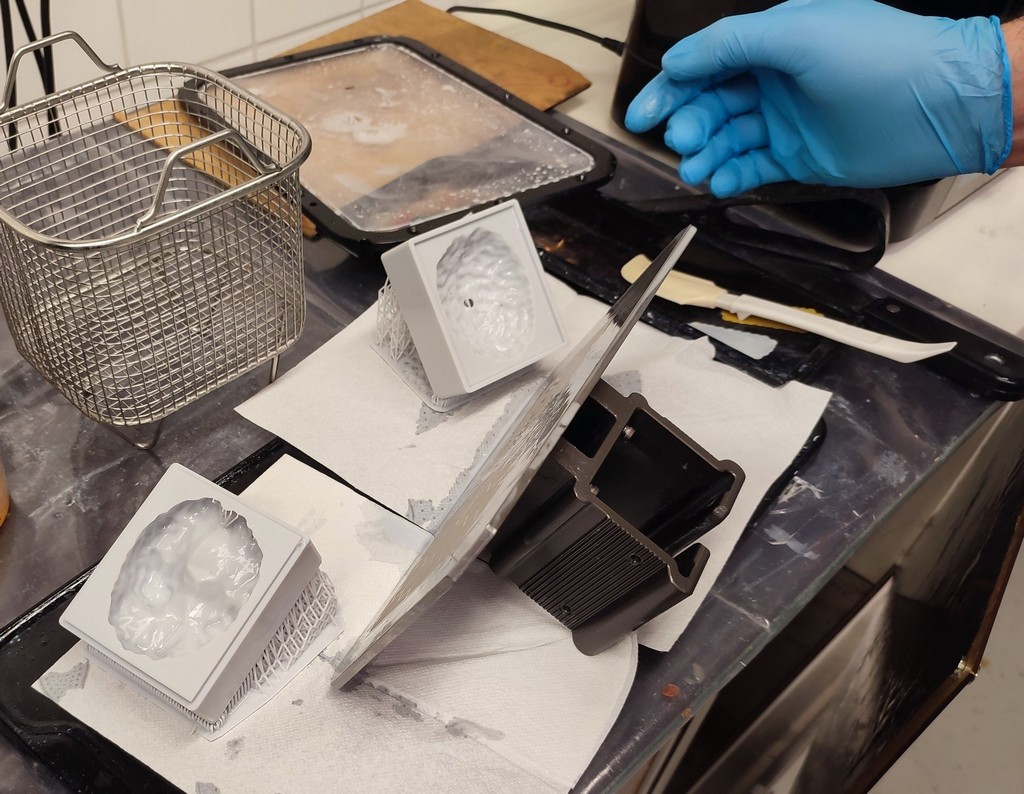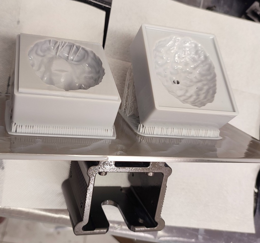 After preparing the brain model, and before designing the mold, I checked it with Toni. He mentioned that the many cavities and details could make it difficult to remove the cast cleanly,