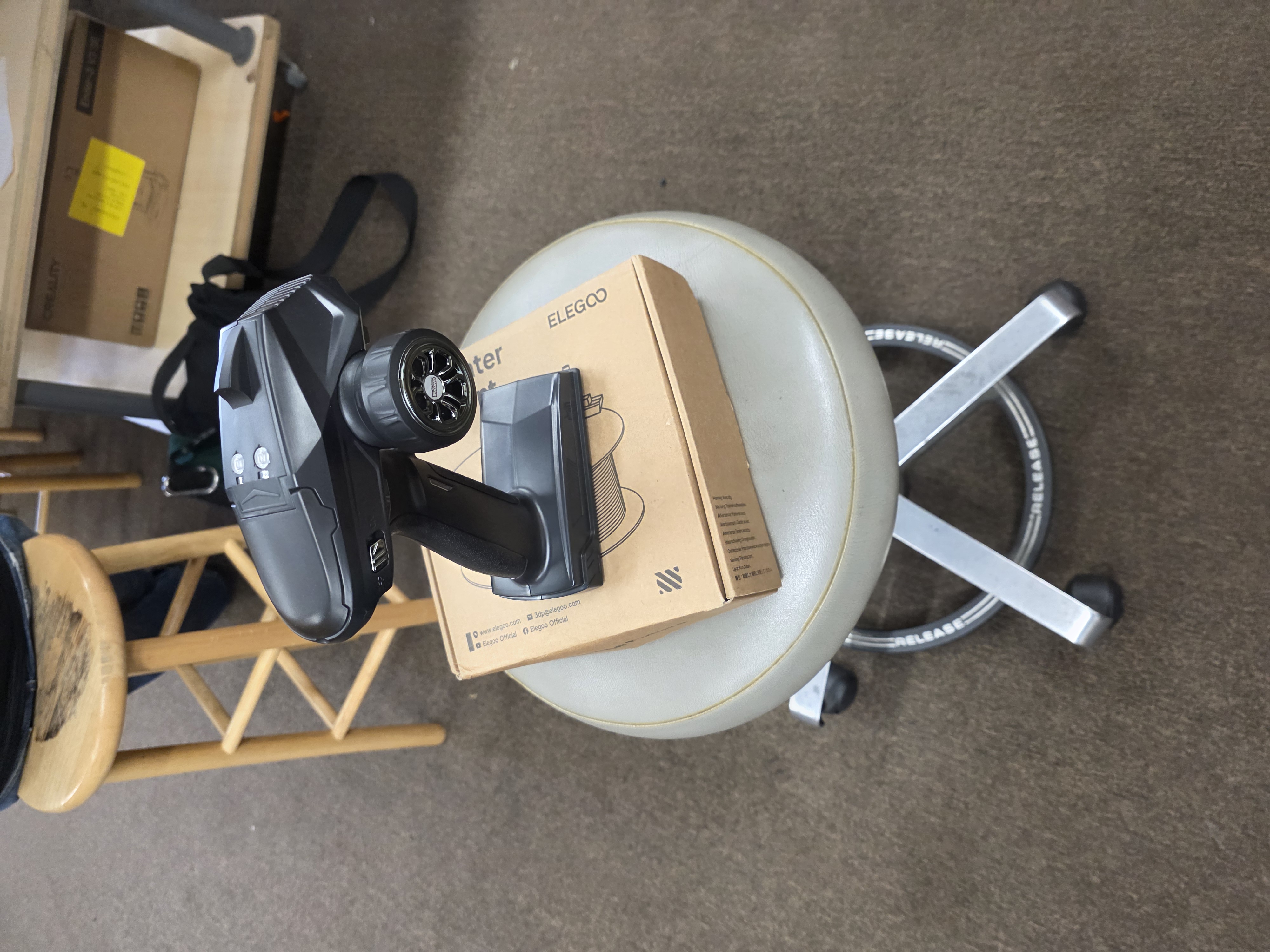After about 10 failed attempts, I switched things up. I unplugged it from the computer and connected it to my phone instead. I also used a spinning stool as a makeshift turntable. Instead of the army man, I tried scanning an RC controller I had laying around. This worked better, but it was still not perfect.