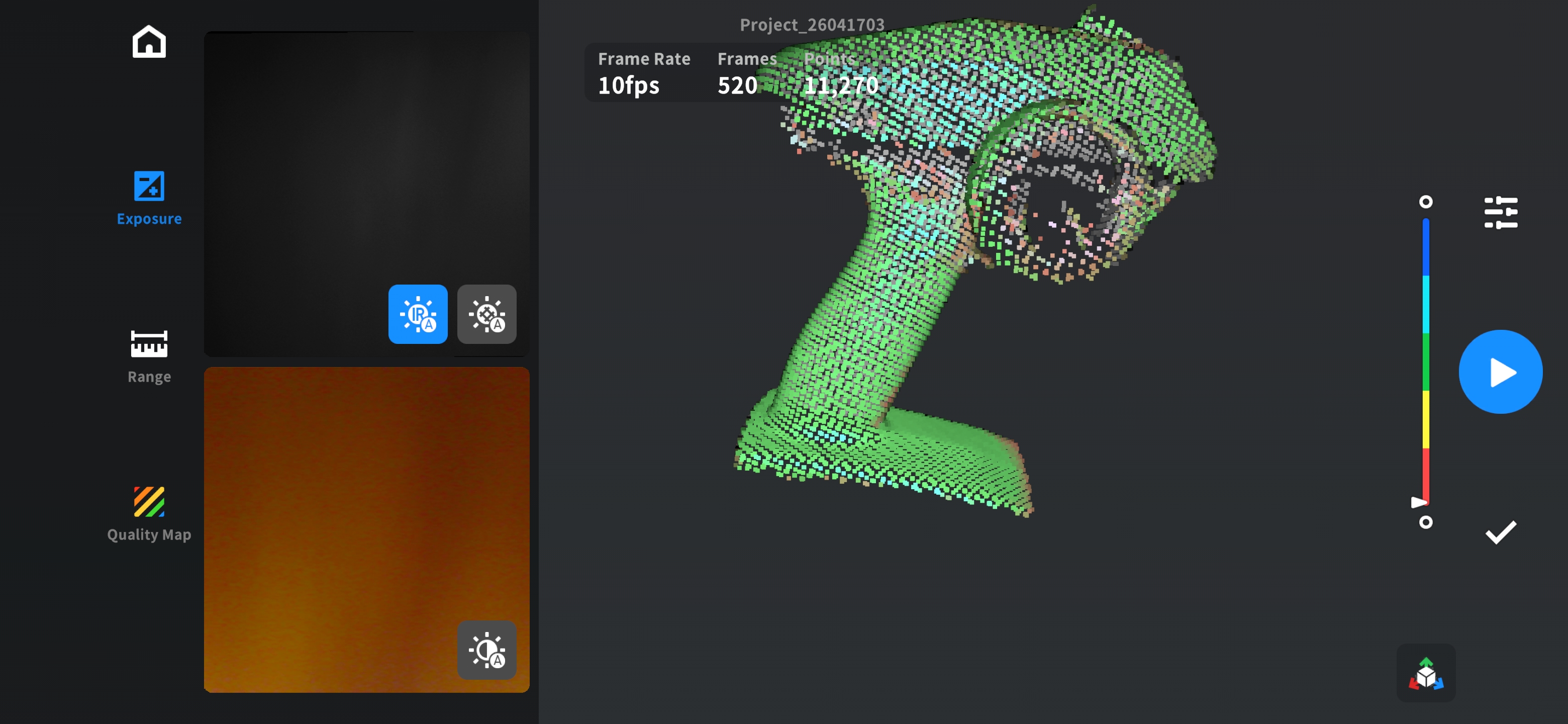 This scanner can either be handheld or mounted on a tripod, and it can connect to a computer or a cellphone using Bluetooth or a cable. I first tried scanning a very small green army man while it was plugged into the computer, but it would not lock onto the object and the scan kept spinning out of control.