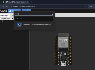 This project requires an IMU, so we need to add one. Click the “+” button to open the components menu and search for the MPU6050 sensor.