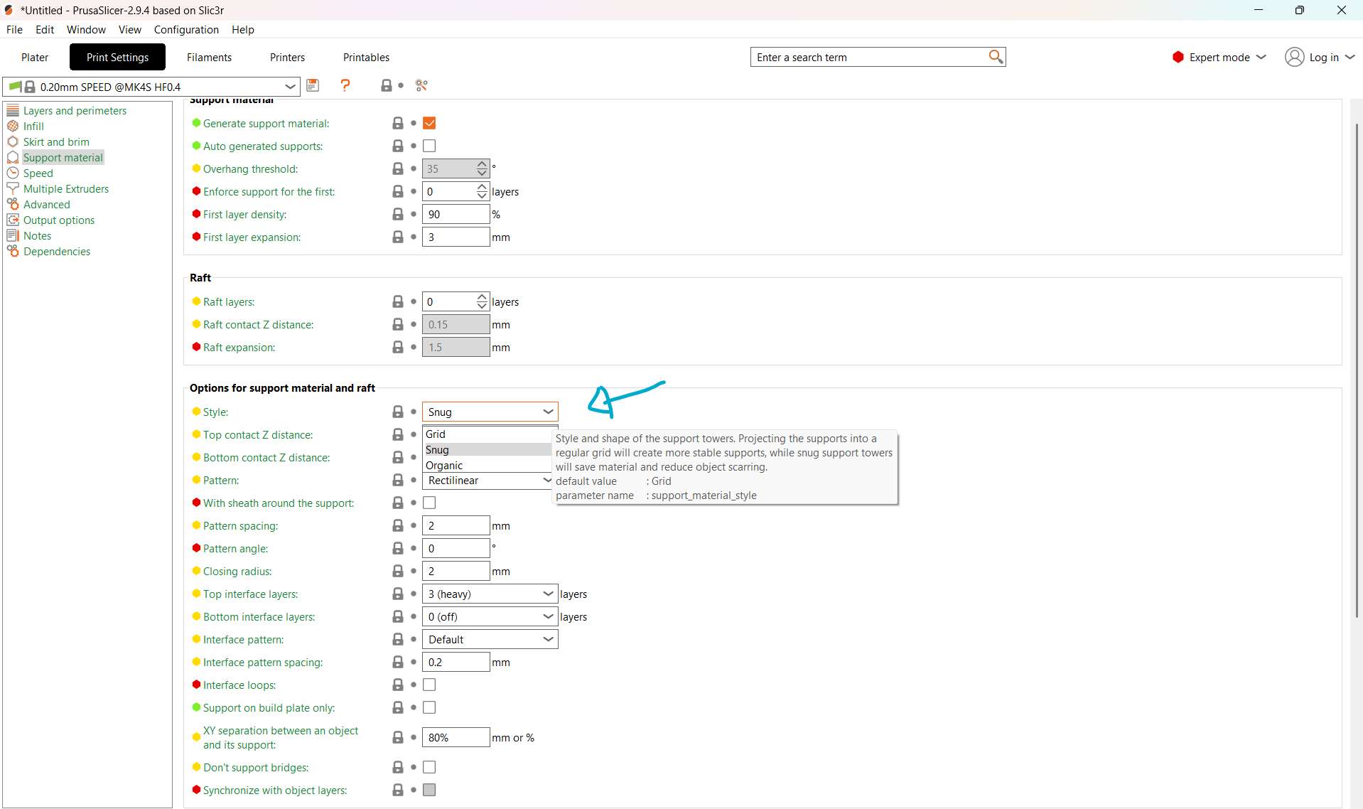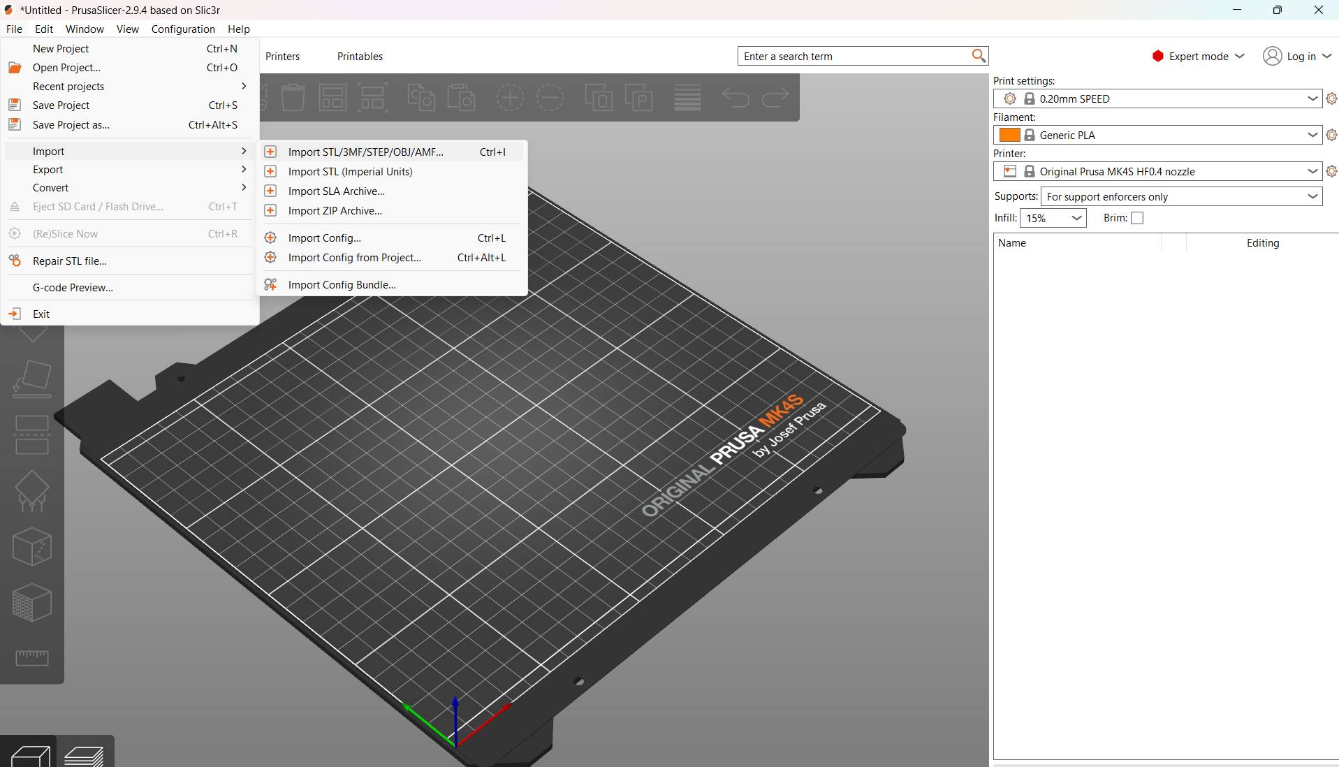 | Original Prusa MK4S | Cartesian (bed-slinger, open-frame) | 250 × 210 × 220 | 250 × 210 | 220 | 11.55 | 500 × 550 × 400 | 7.0 | 0.05 – 0.30 | 1.75 | 0.4 mm (High-flow Prusa Nozzle brass CHT) |