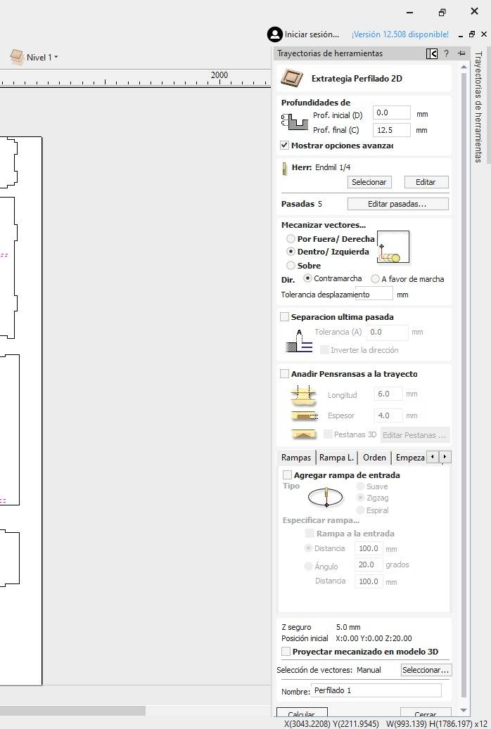 Select the Inside/Left option in the Machine Vectors section, then click Calculate. When cutting holes, we use the Inside/Left strategy to ensure the CNC bit stays on the inner side of our vector. This maintains the exact diameter of the hole, as the software compensates for the tool's radius. If we cut "On" the line, the hole would be larger than designed by exactly half the bit's diameter.