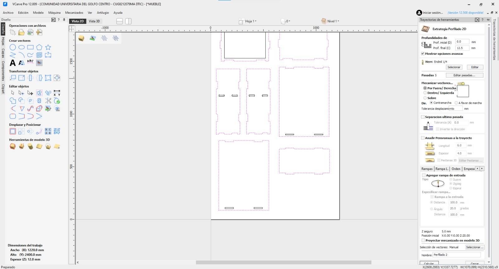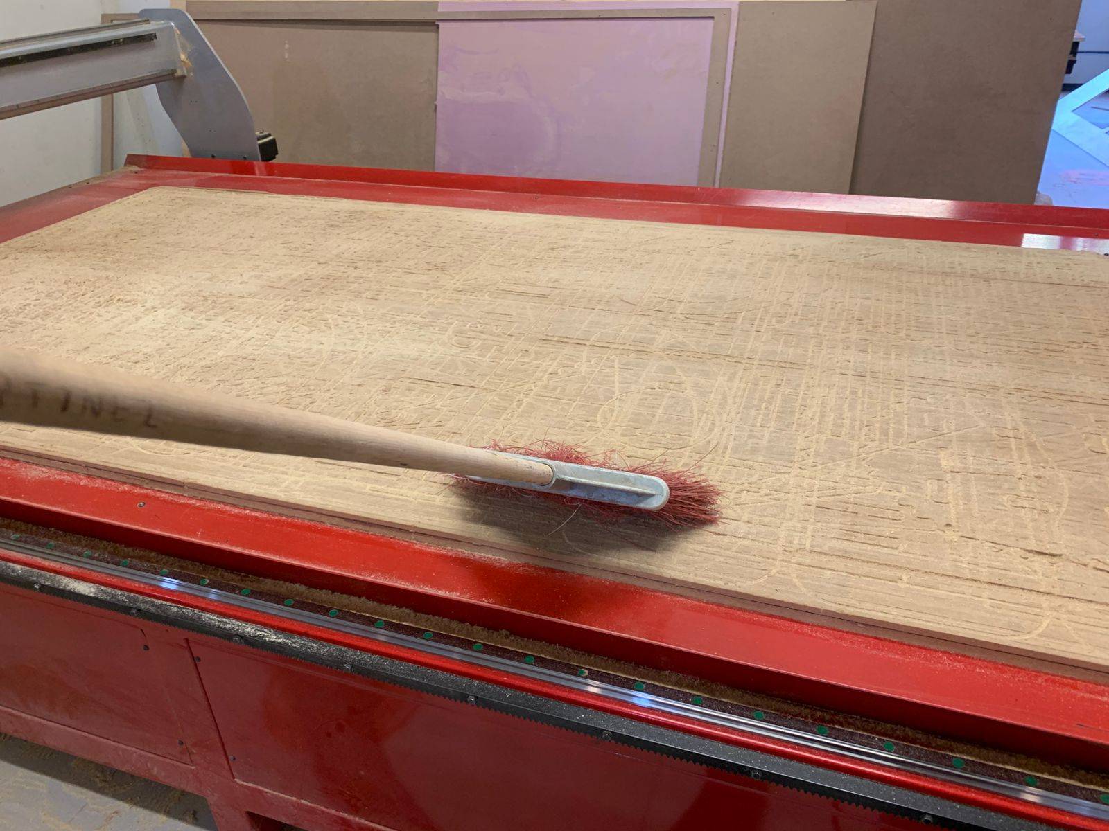 Tabs hold pieces in place, they are small bridges of material left intentionally between the part and the waste board. Without them, once the machine finishes the final pass of an exterior cut, the piece would become loose and could be sucked into the vacuum, hit the rotating bit, or fly off the table, damaging both the part and the machine. I used 6 tabs per part, placed manually on the contour.