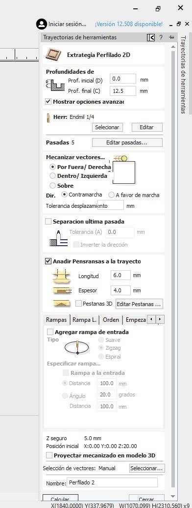 To apply the cutting function, go to the Toolpath menu on the right panel.